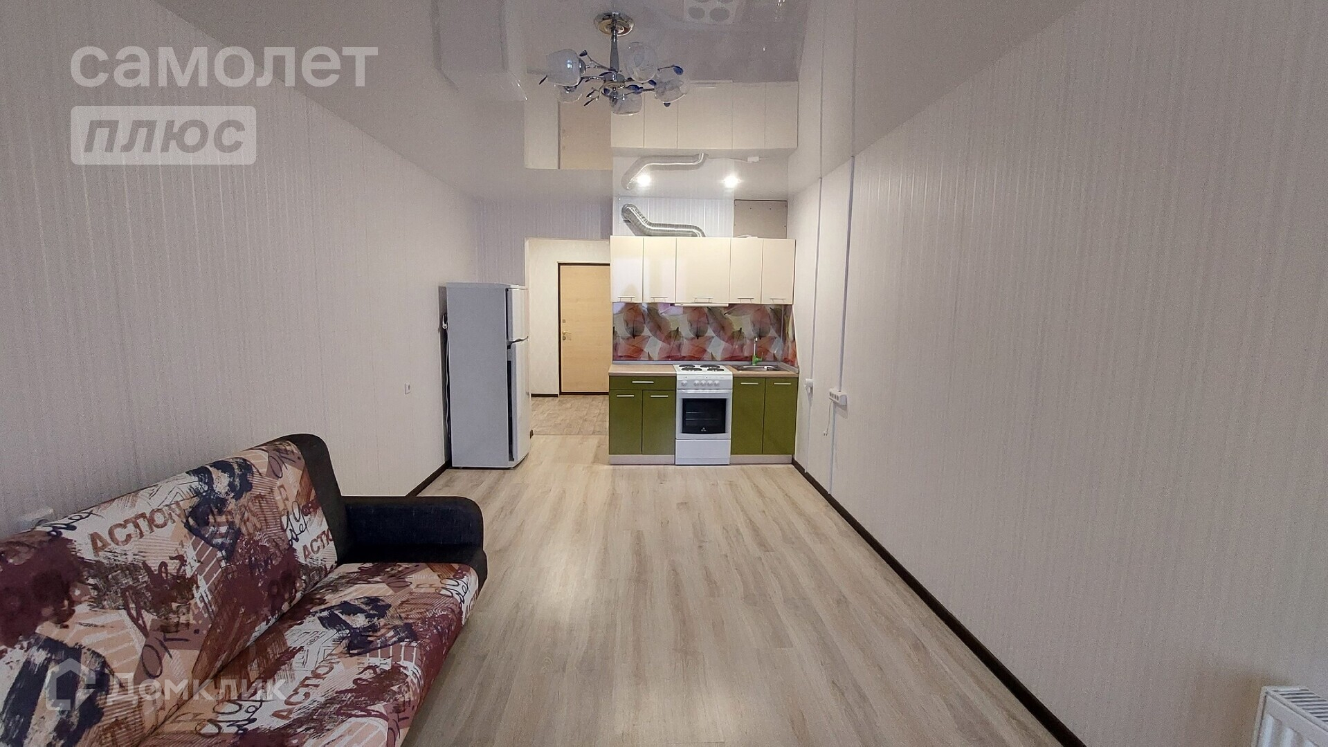 Новым собственникам остается кухонный гарнитур, диван и холодильник.