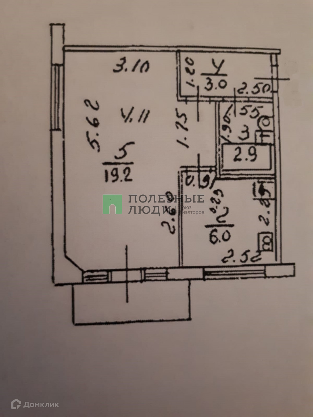 Жилая площадь 19.2 м2