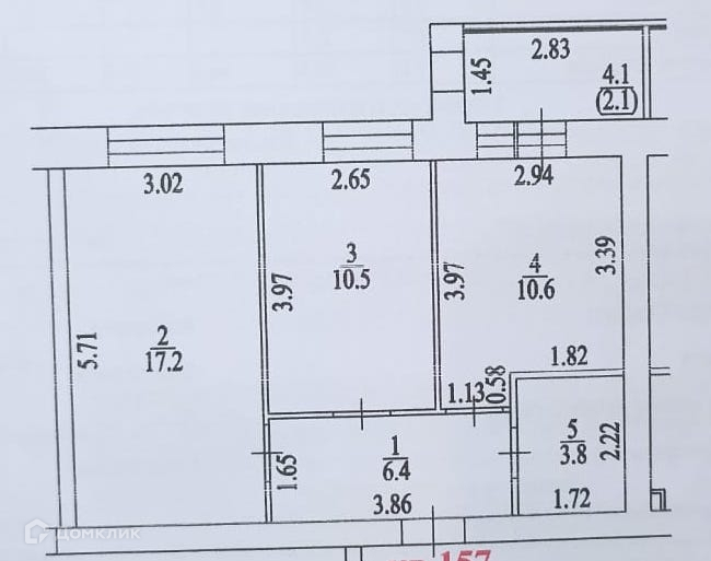 В КВАРТИРЕ функциональная планировка: кухня - 10,6 м2 с выходом на остекленную лоджию – 4,1 м2, комнаты - 17,2 и 10,5 м2, санузел - 3,8 м2, прихожая - 6,4 м2. Ориентация окон на запад.