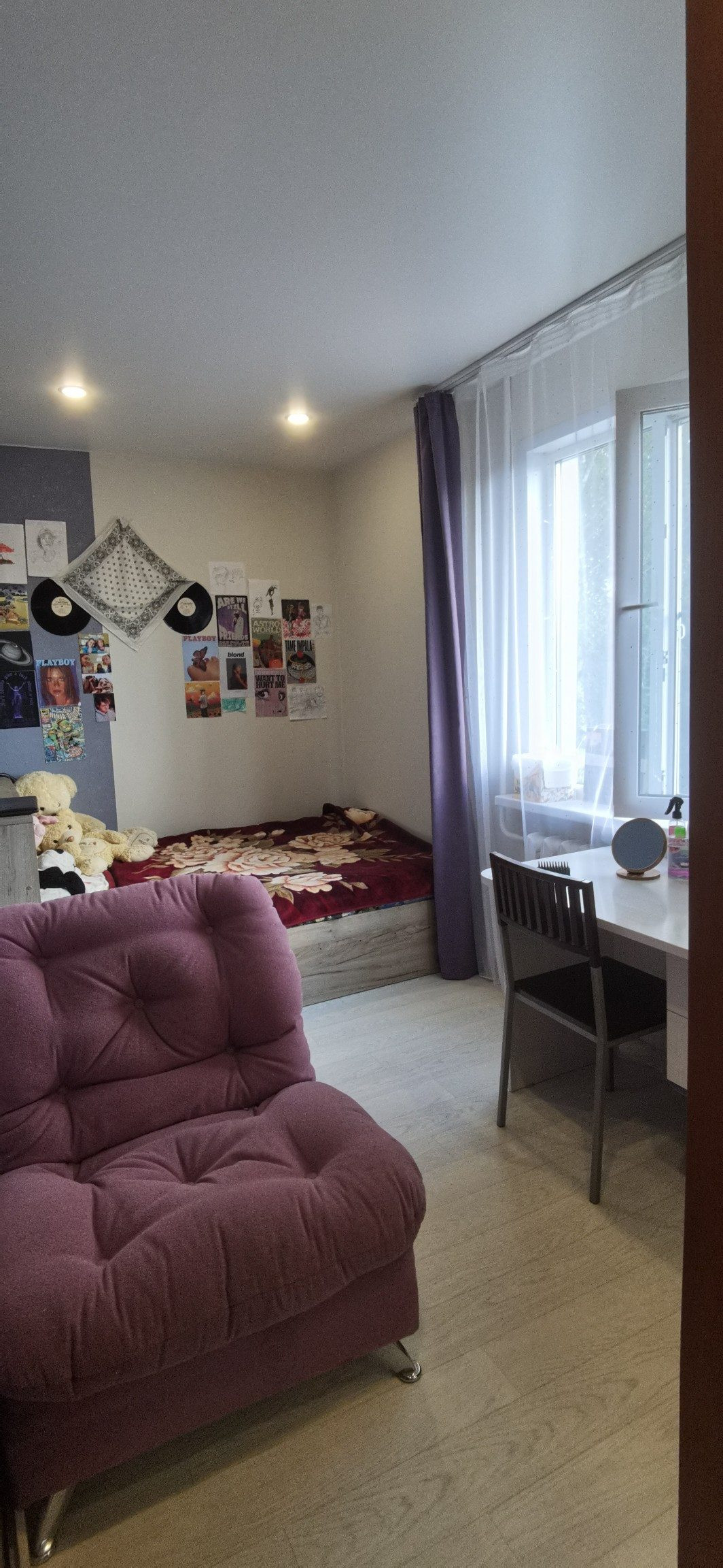 Фото летние, так как снимали с продажи, сейчас в большой комнате установлен ещё один шкаф-купе.