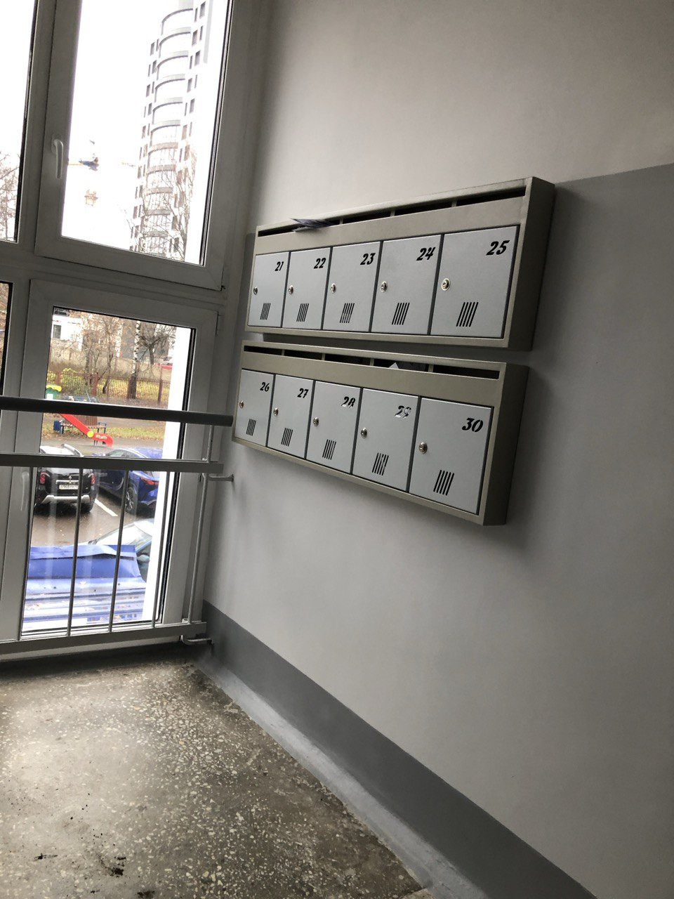 - Отделка в подъездах выполнена в светлых тонах с панорамными окнами;