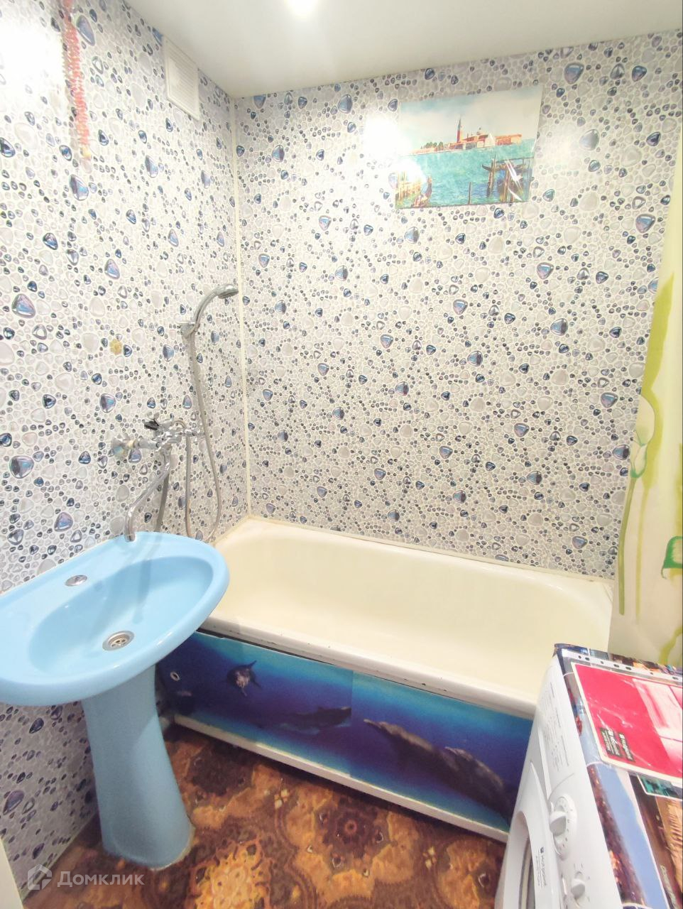 Санузел 1,3 кв. м и ванная 2,7 кв.м. обшиты пластиковыми панелями.