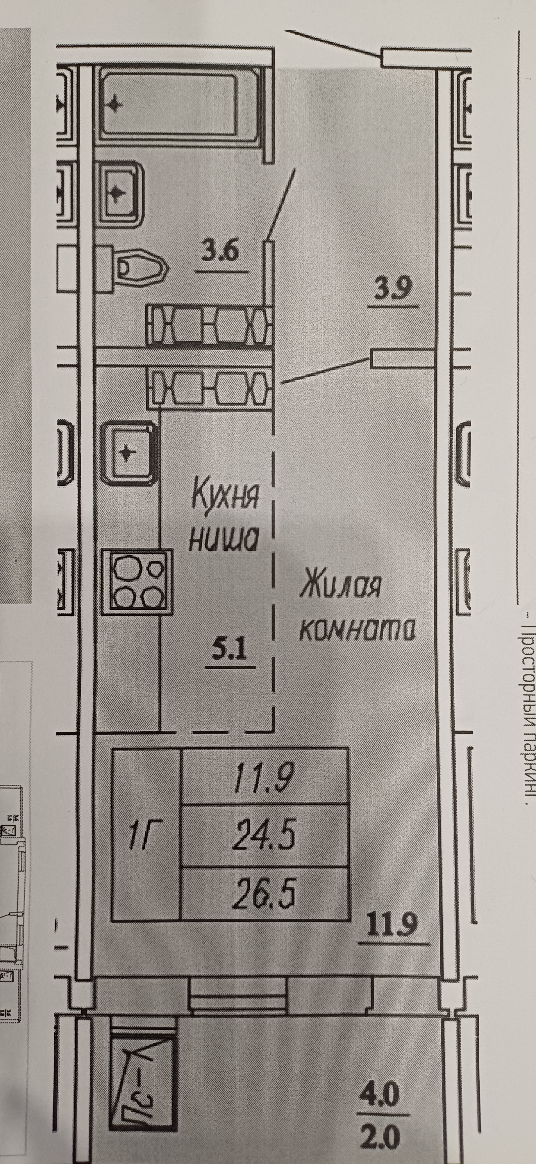 Общая площадь 26.6 м2