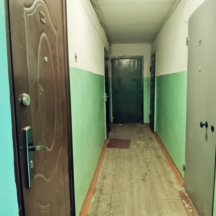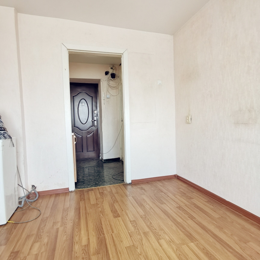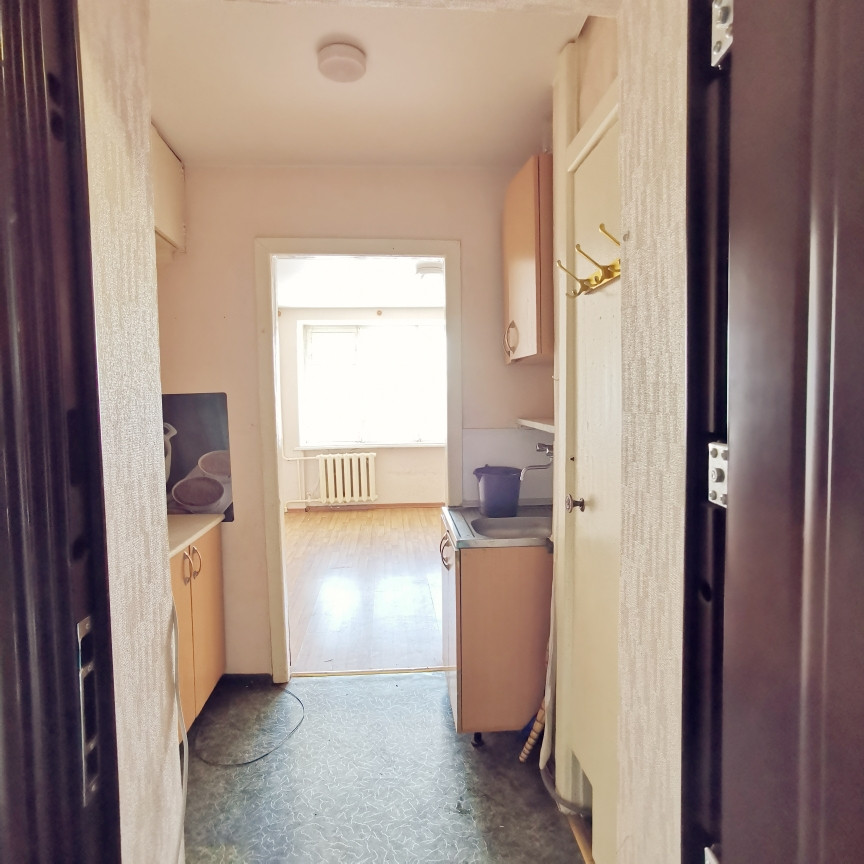 Малосемейка расположена на 4 этаже и состоит из жилой комнаты площадью 12,5 кв.м., коридора с зоной кухни 3,1 кв.м. санузла 1,5 кв.м.