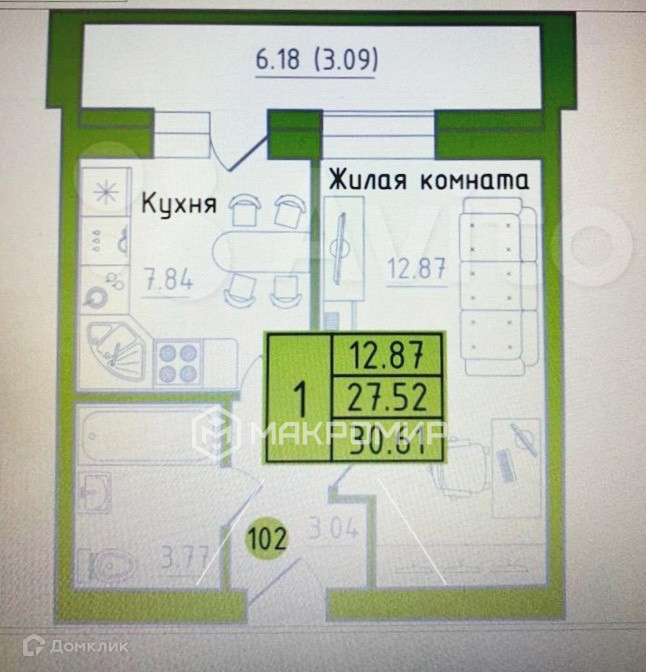 Общая площадь 31 м2