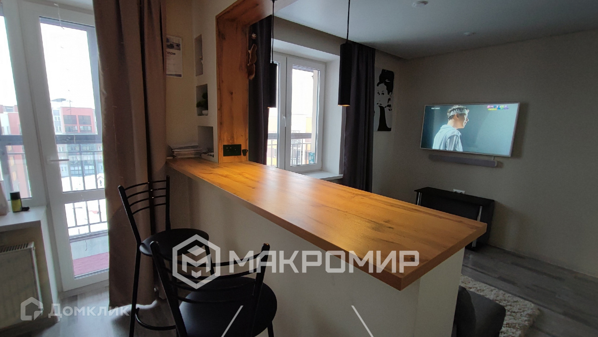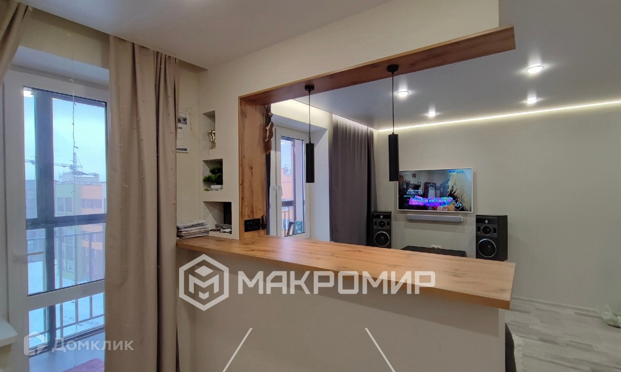 ЖК Знак. 31м2. Сделана под студию, зонирована по дизайн проекту барной стойкой.