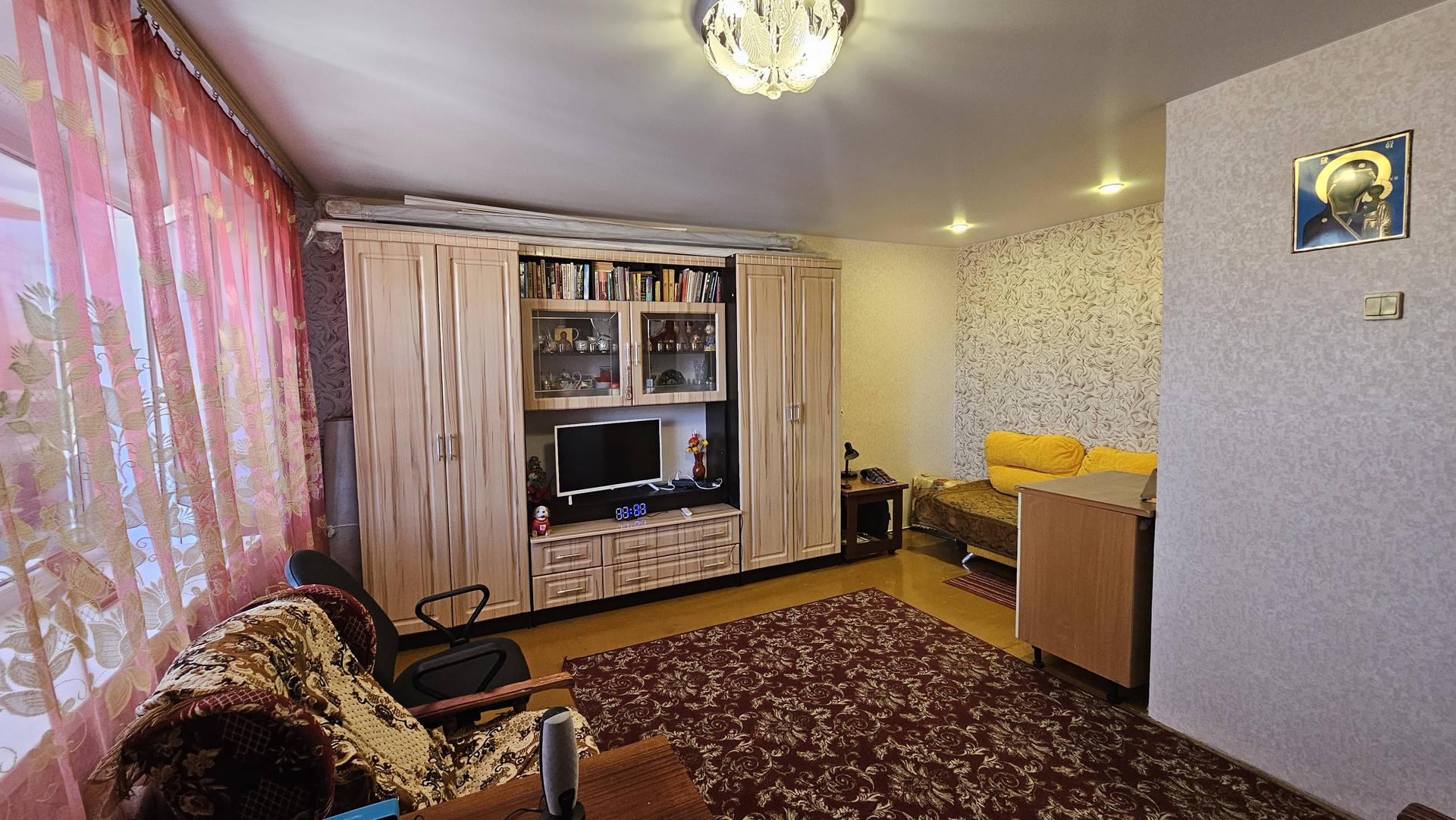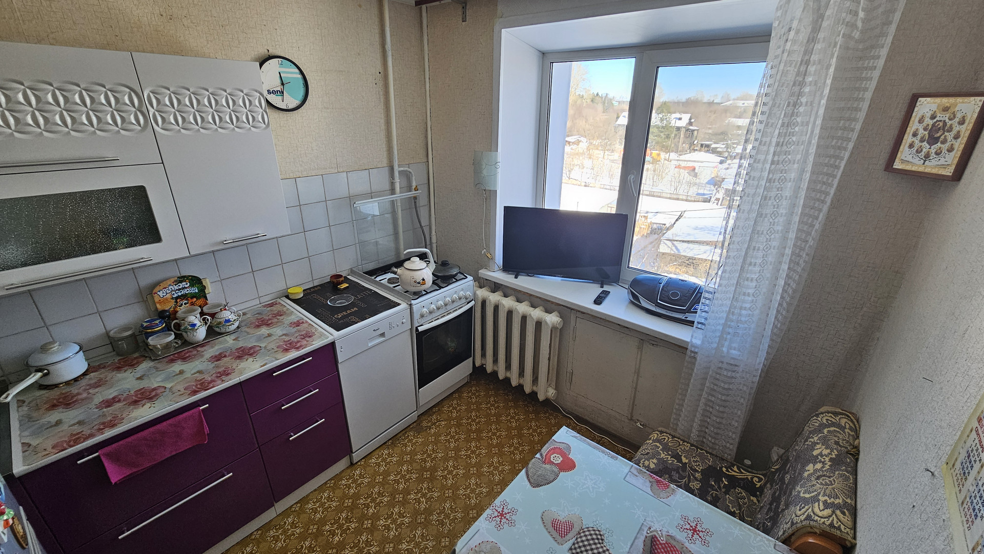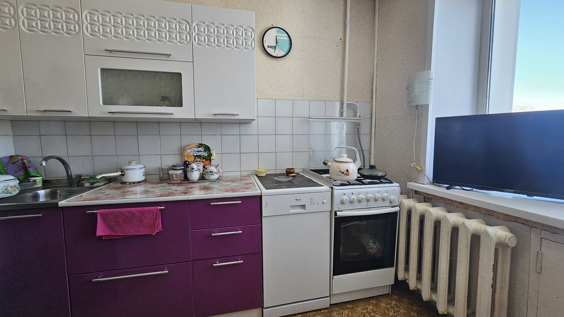 Ремонт косметический. Лоджия застеклена (пластик). Установлены пластиковые окна в комнате и кухне. Счетчики на воду установлены. Натяжные потолки в комнате и кухне.