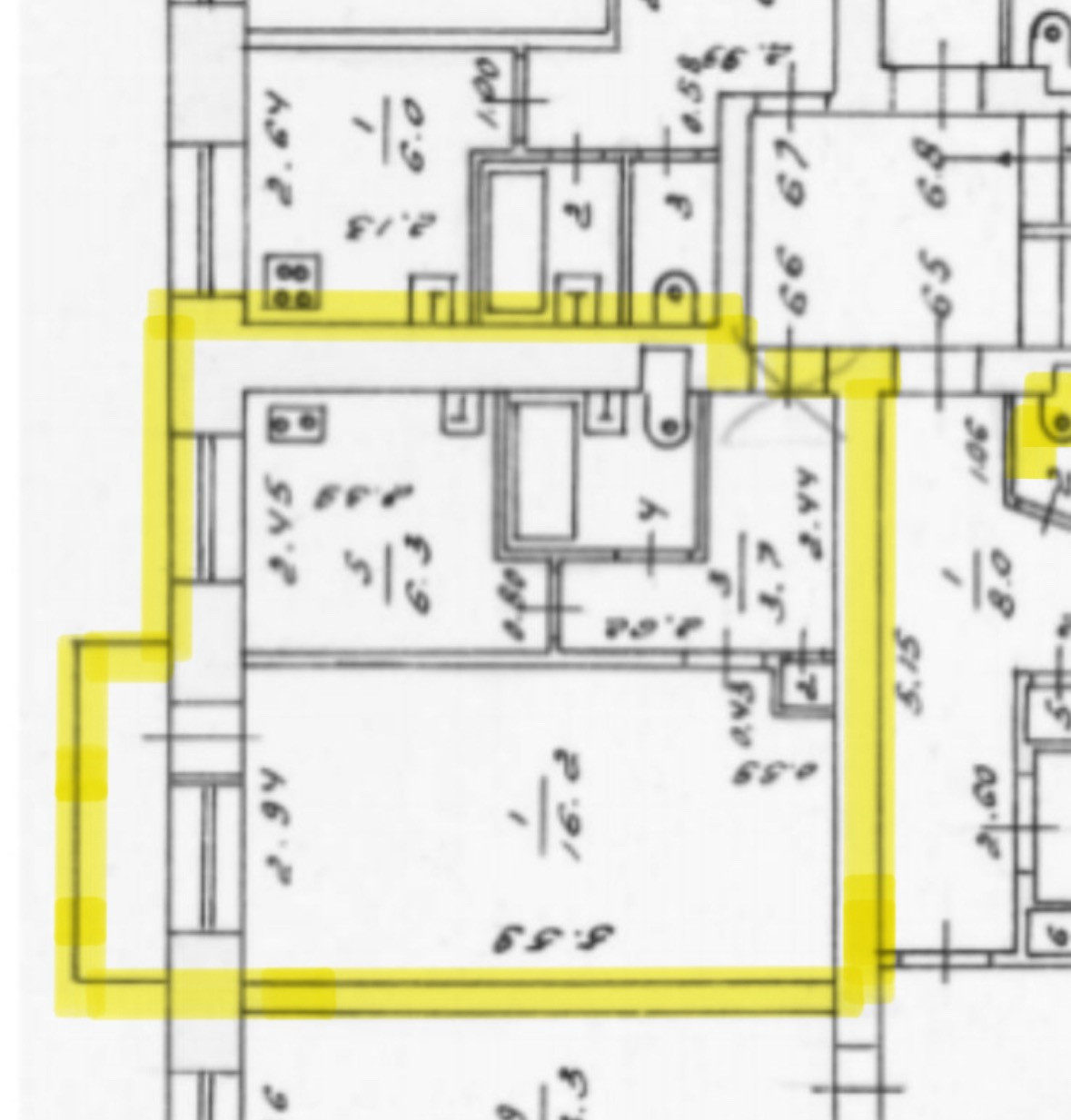 Жилая площадь 16.2 м2