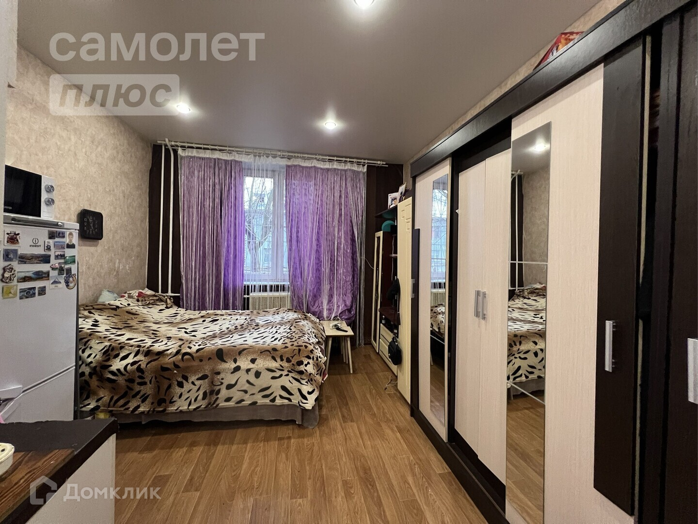 Комната в хорошем состоянии : окна пластик, на полу линолеум, потолок натяжной,точечные свитильники, стены обои. С/у находиться в комнате , отделка панели , пол линолеум .