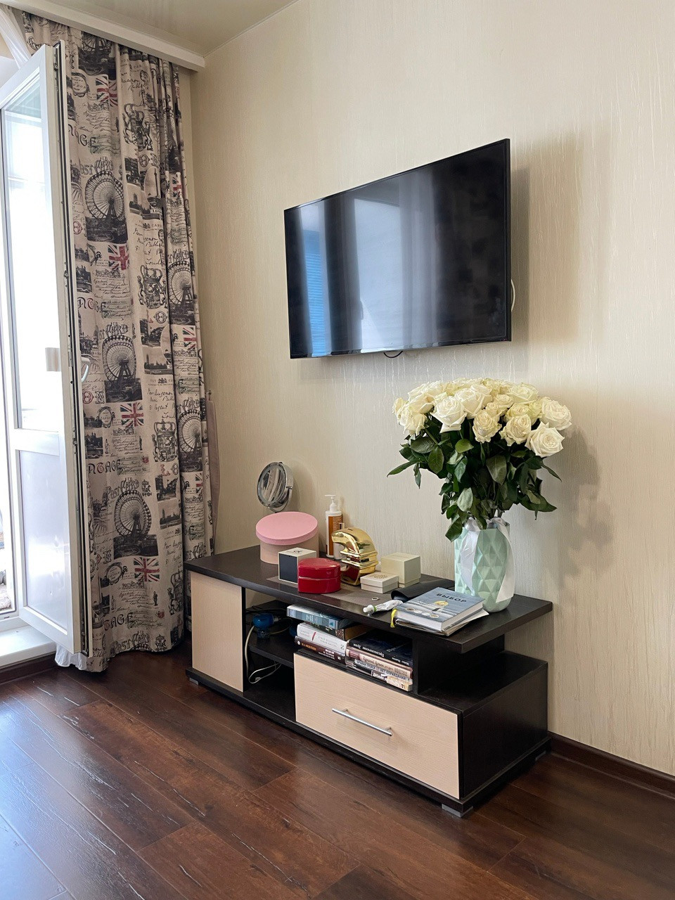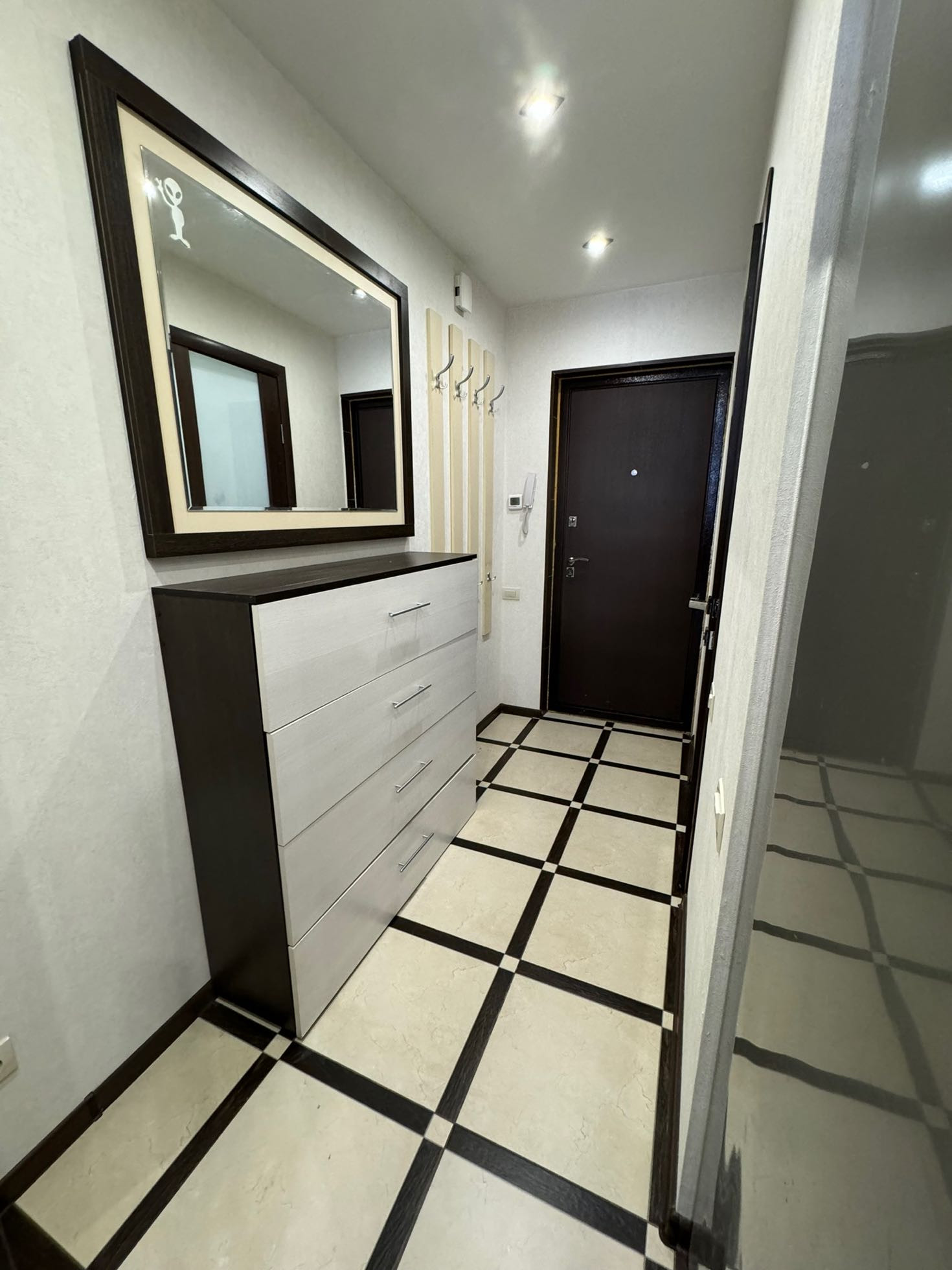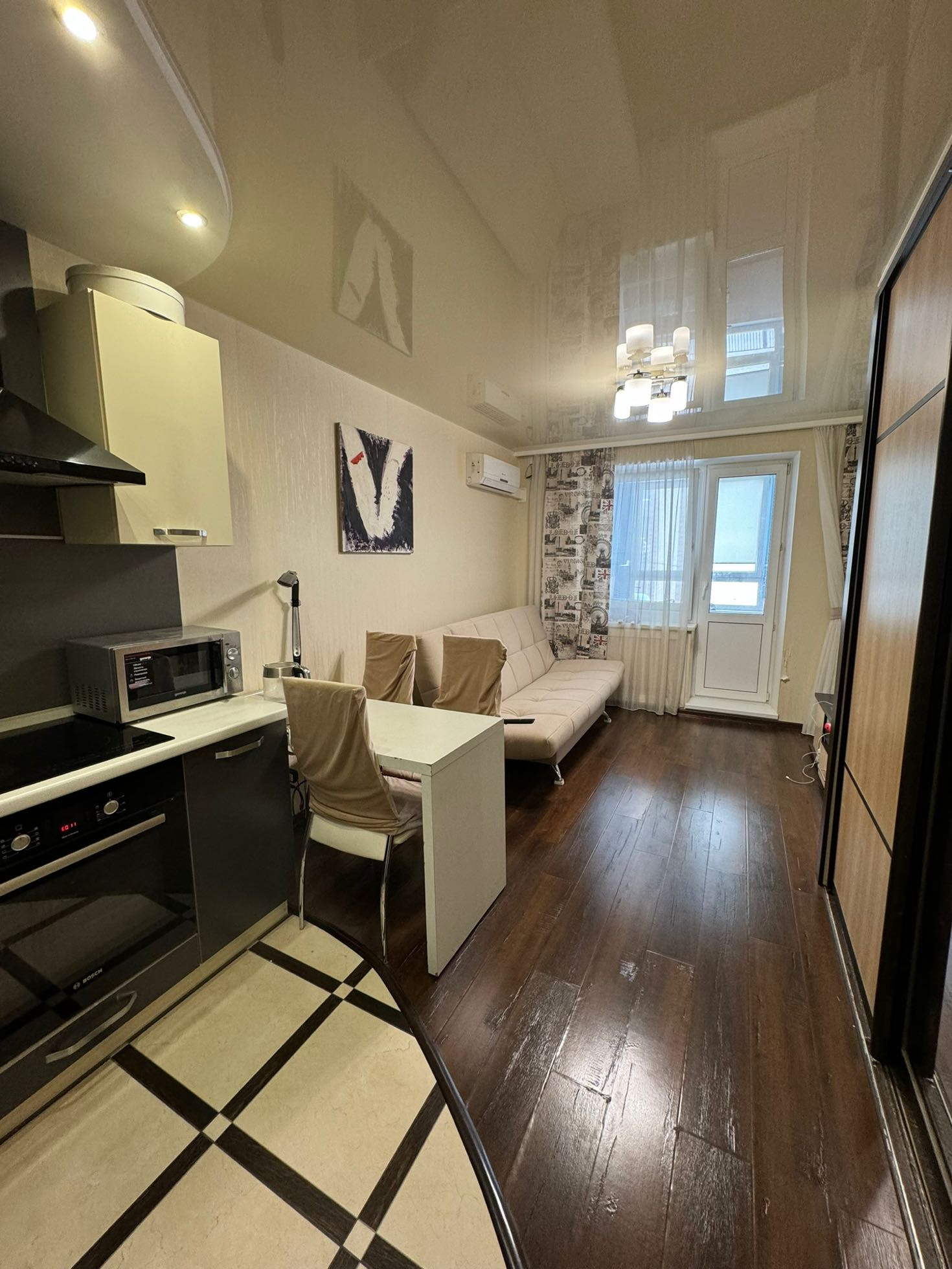Балкон теплый,  также есть регулируемый подогрев полов.  Подогрев есть также в прихожей.