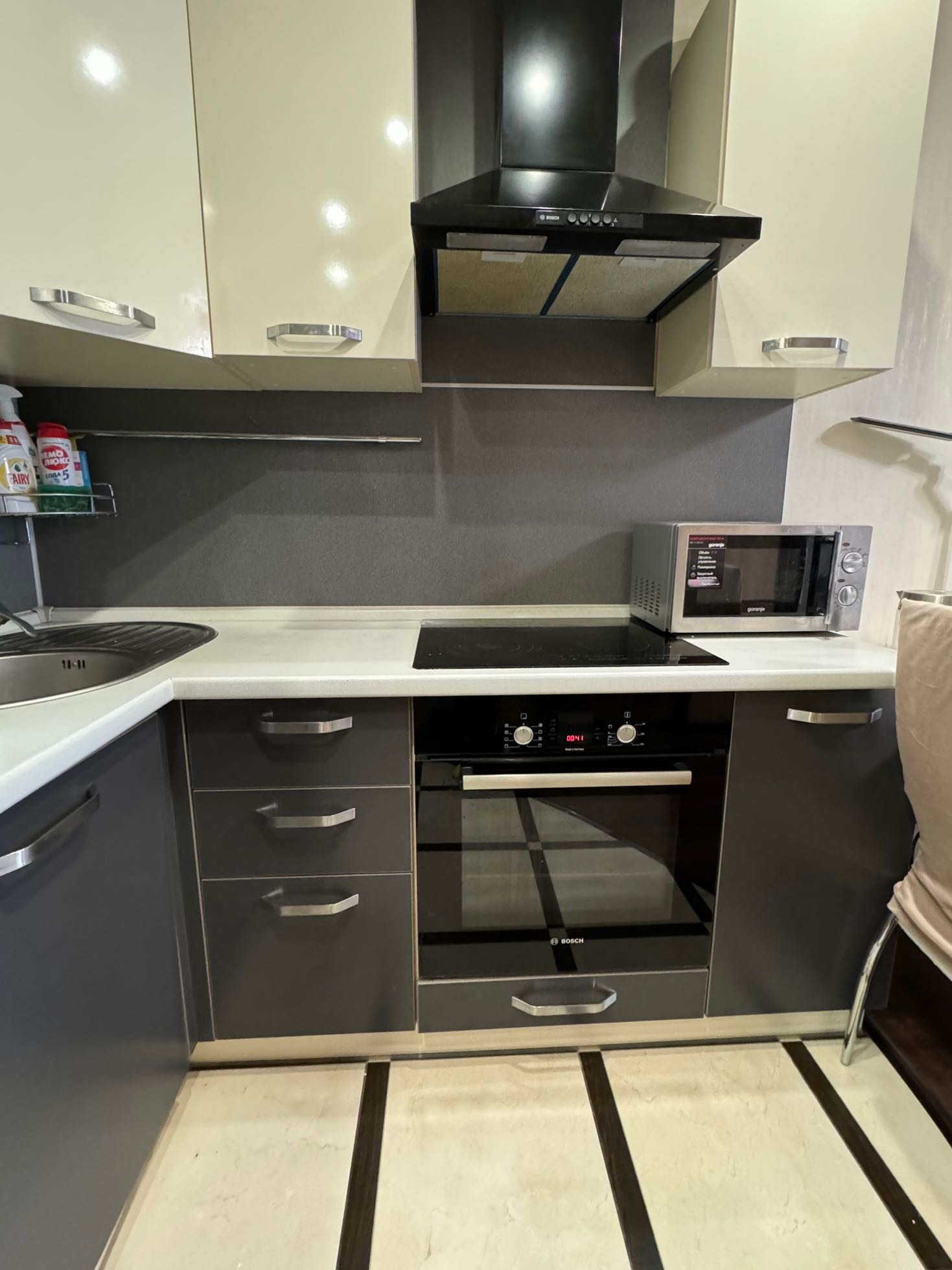 Вся мебель  и техника остается ( стиральная машина Bosch, холодильник Haier, духовой шкаф Bosch, вытяжка Bosch, плита Electrolux, пылесос Dyson ). Самые лучшие соседи. Без торга