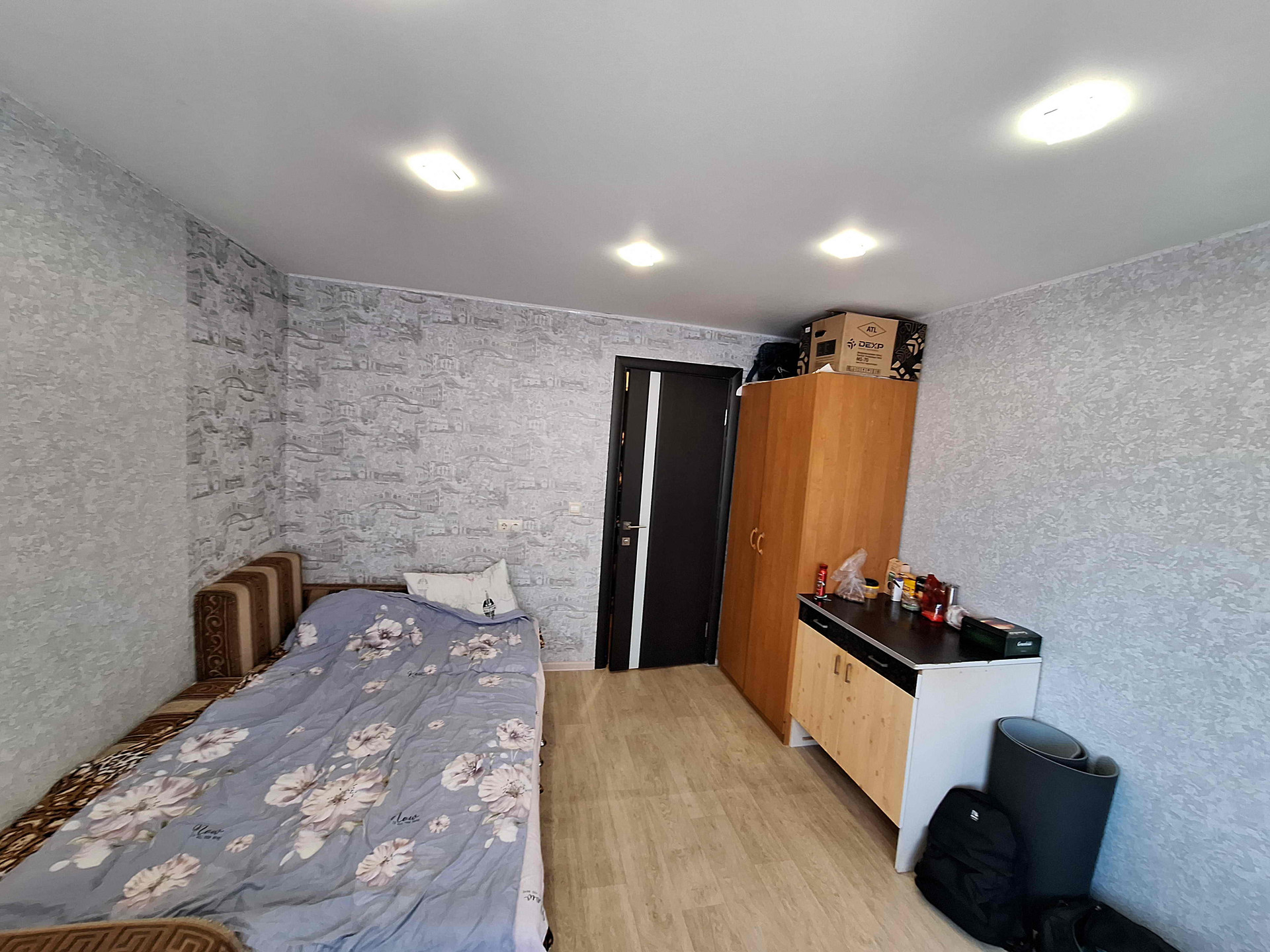 В квартире заменена вся проводка,новая межкомнатная и входная дверь, окно пластиковое, в комнате натяжной потолок, сан узел совмещенный. Тамбур на 4 квартиры.