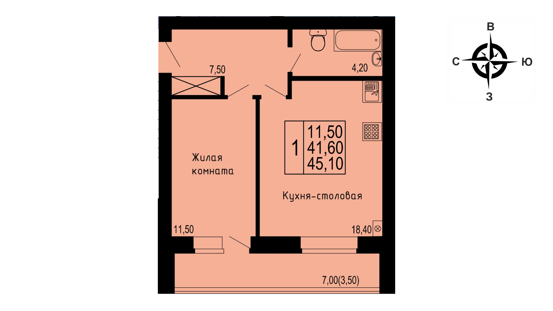 Количество комнат 1