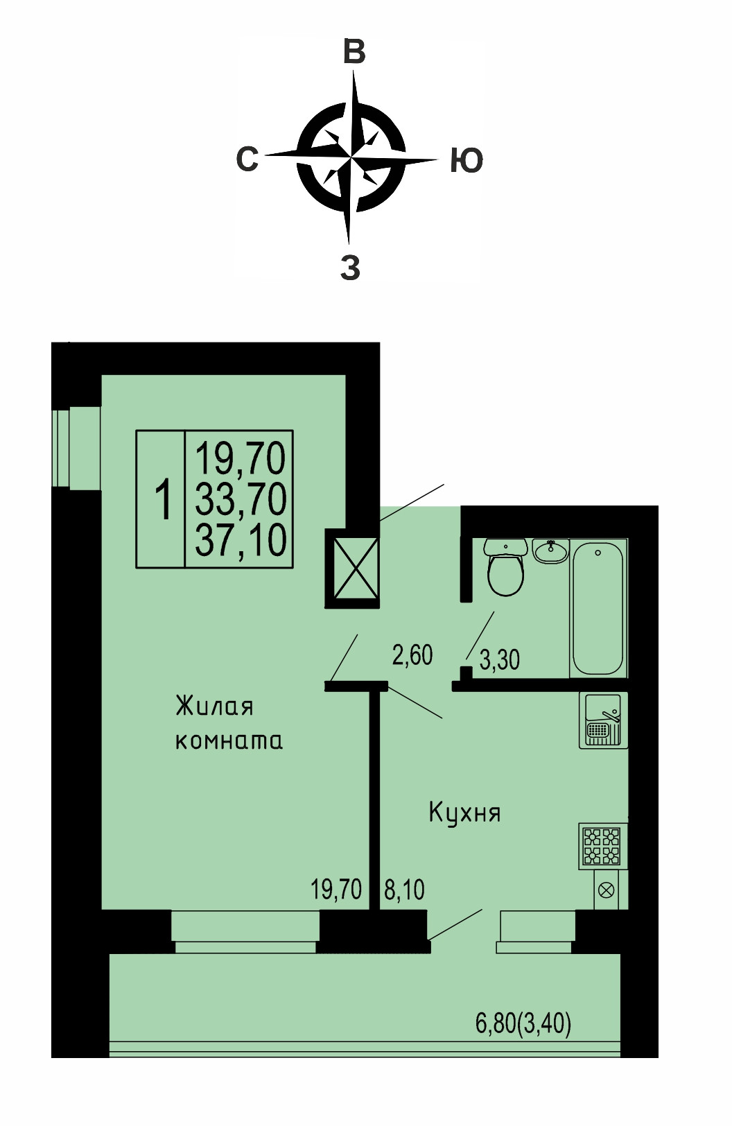 Санузел 1 совмещенный