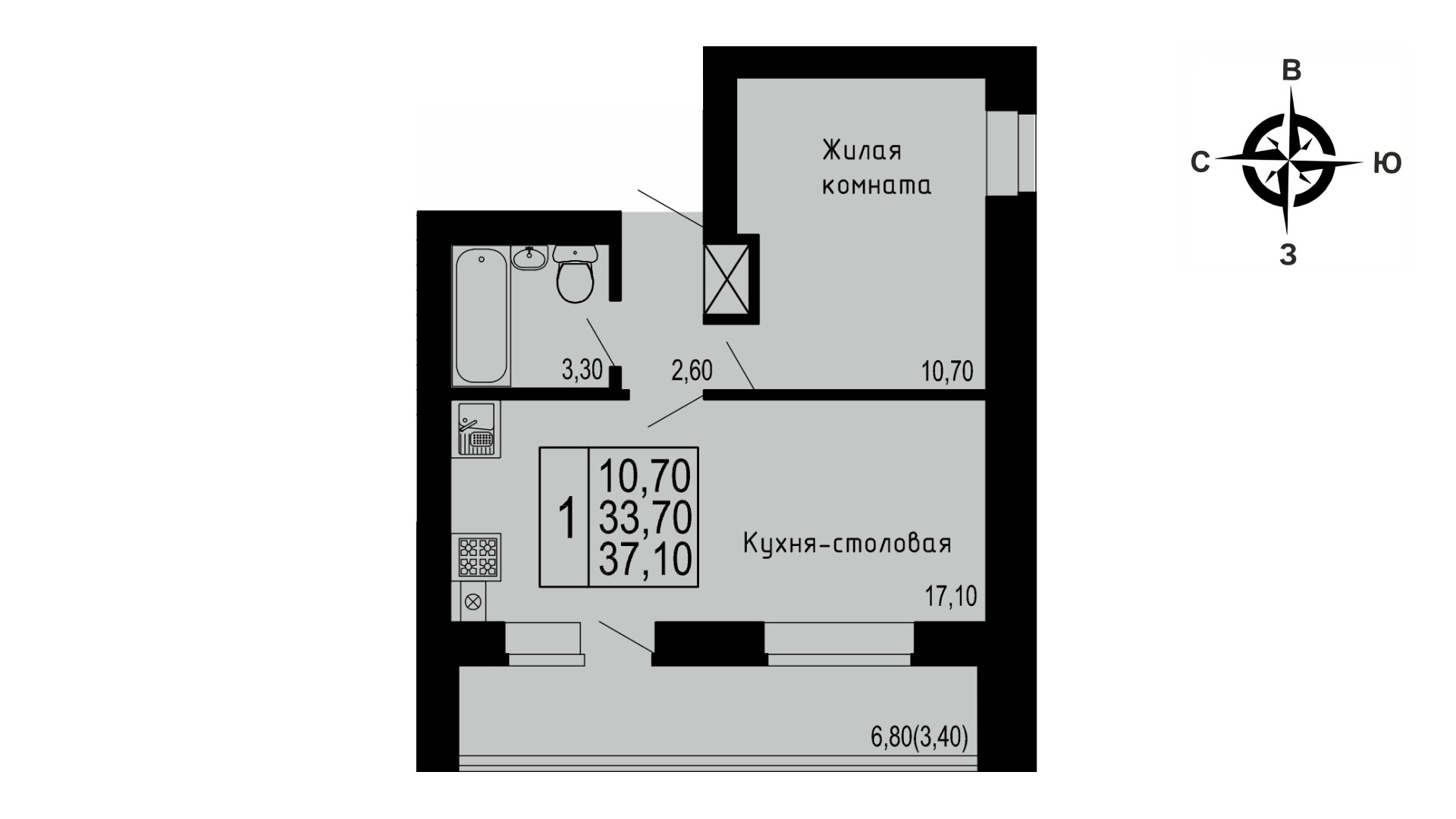 Количество комнат 1