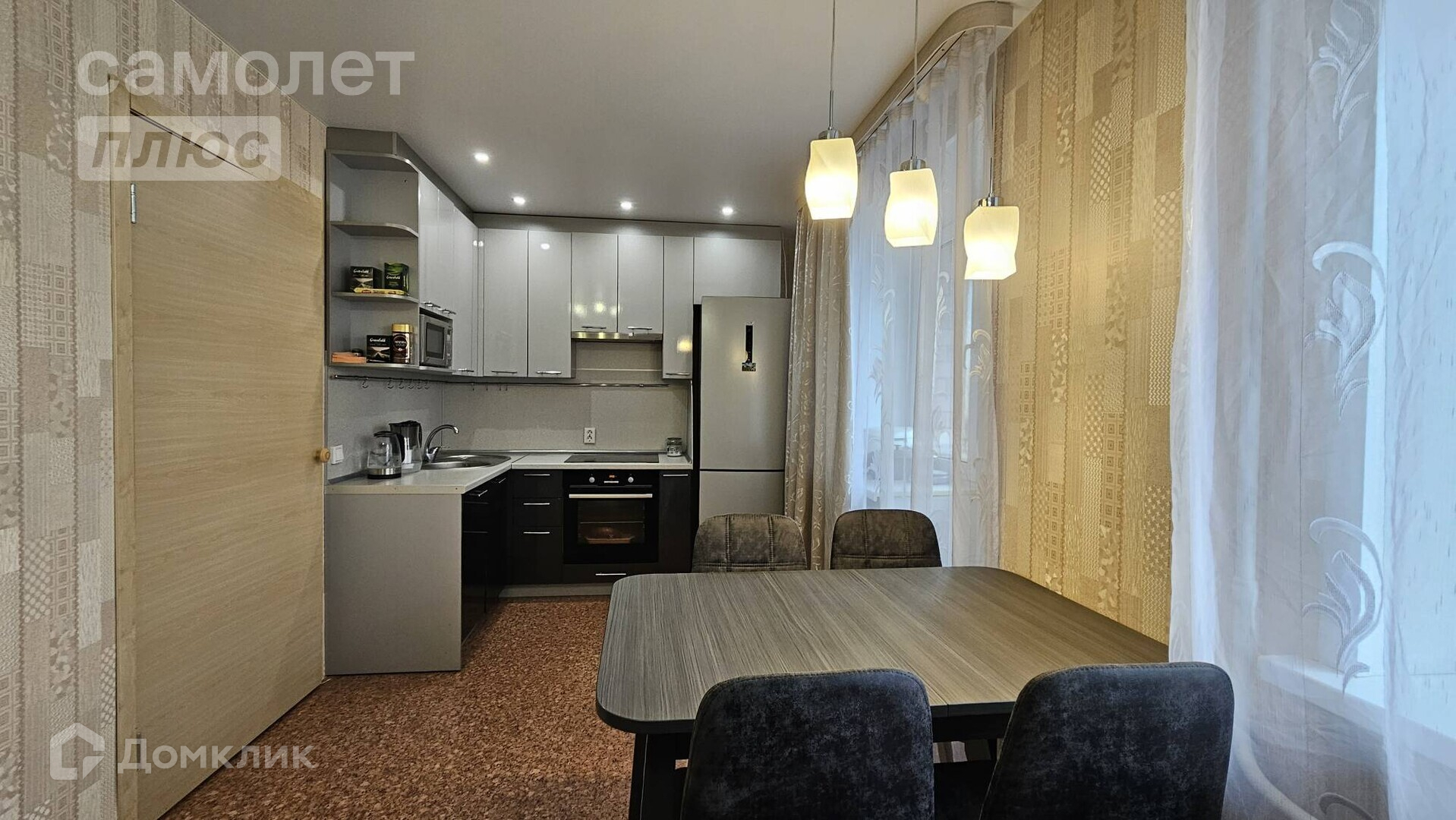 Большая кухня с выходом на балкон,