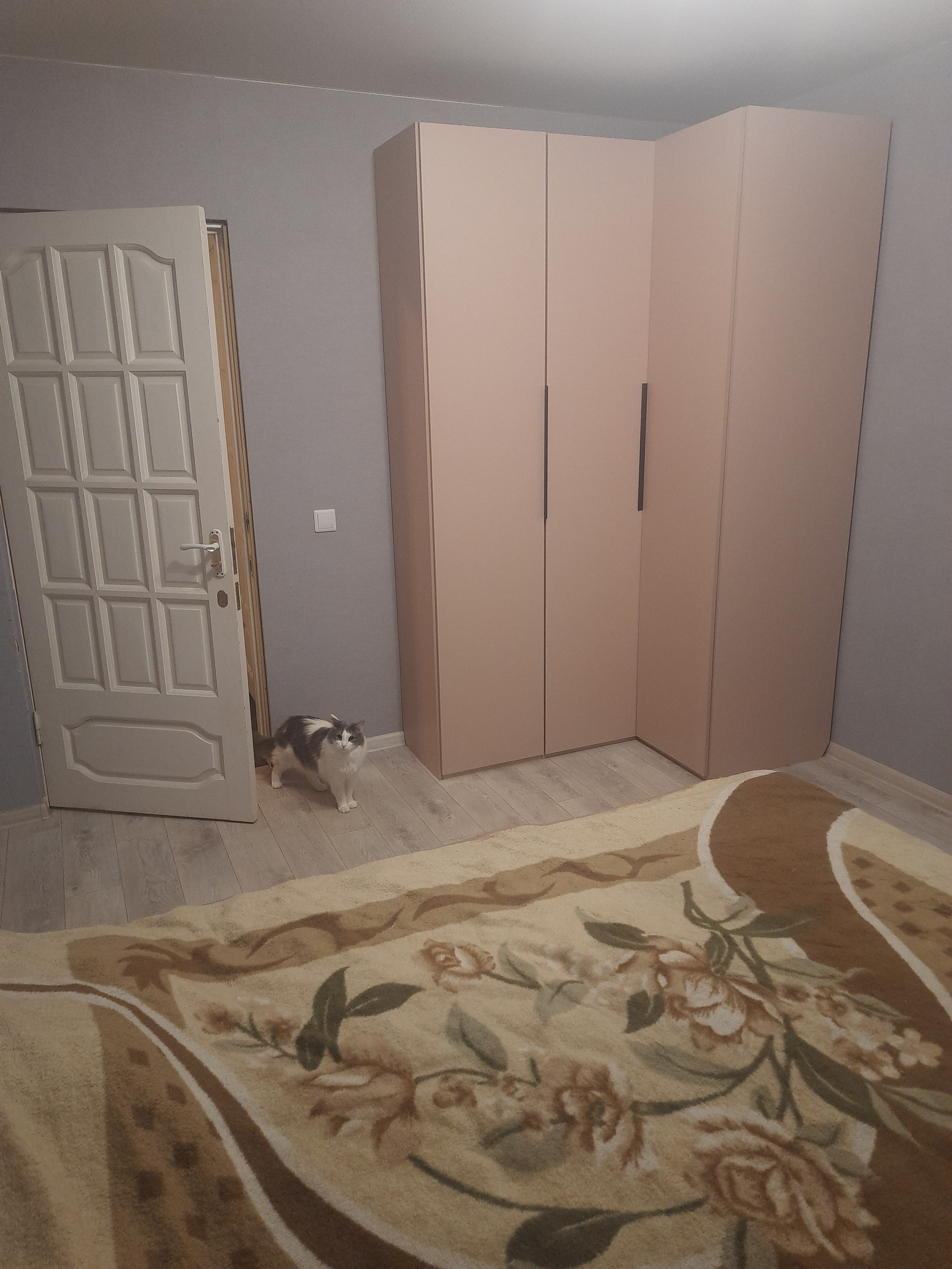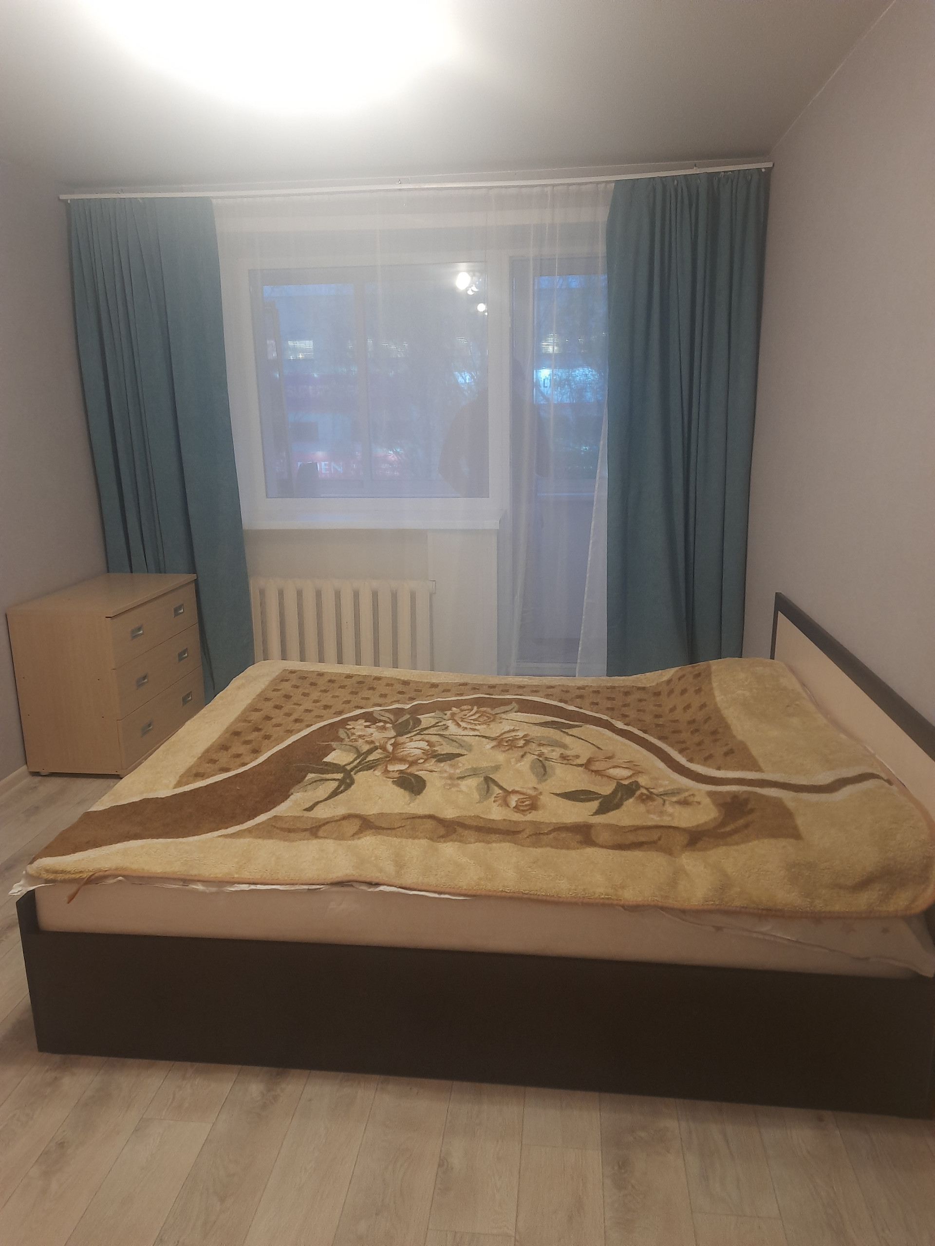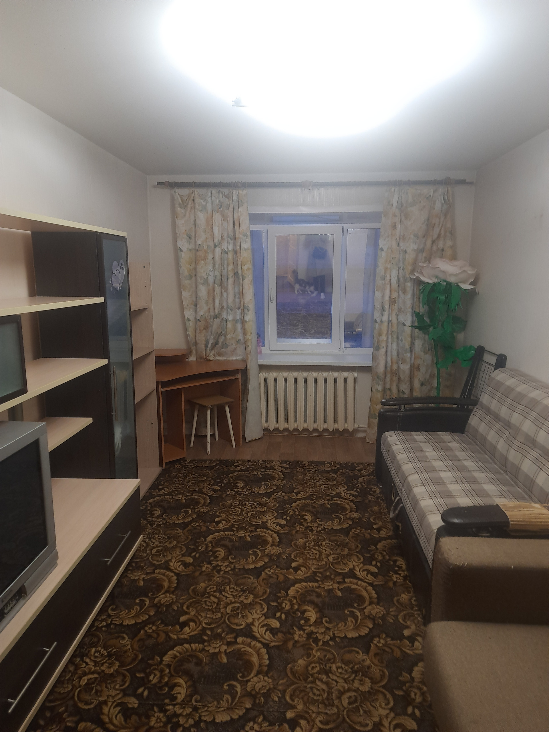Не требует дополнительных вложений, можно заехать и жить. Окна везде пластиковые, потолки натяжные, на полу линолеум, балкон застеклен, обшит, есть большая вместительная гардеробная, в санузле кафель.