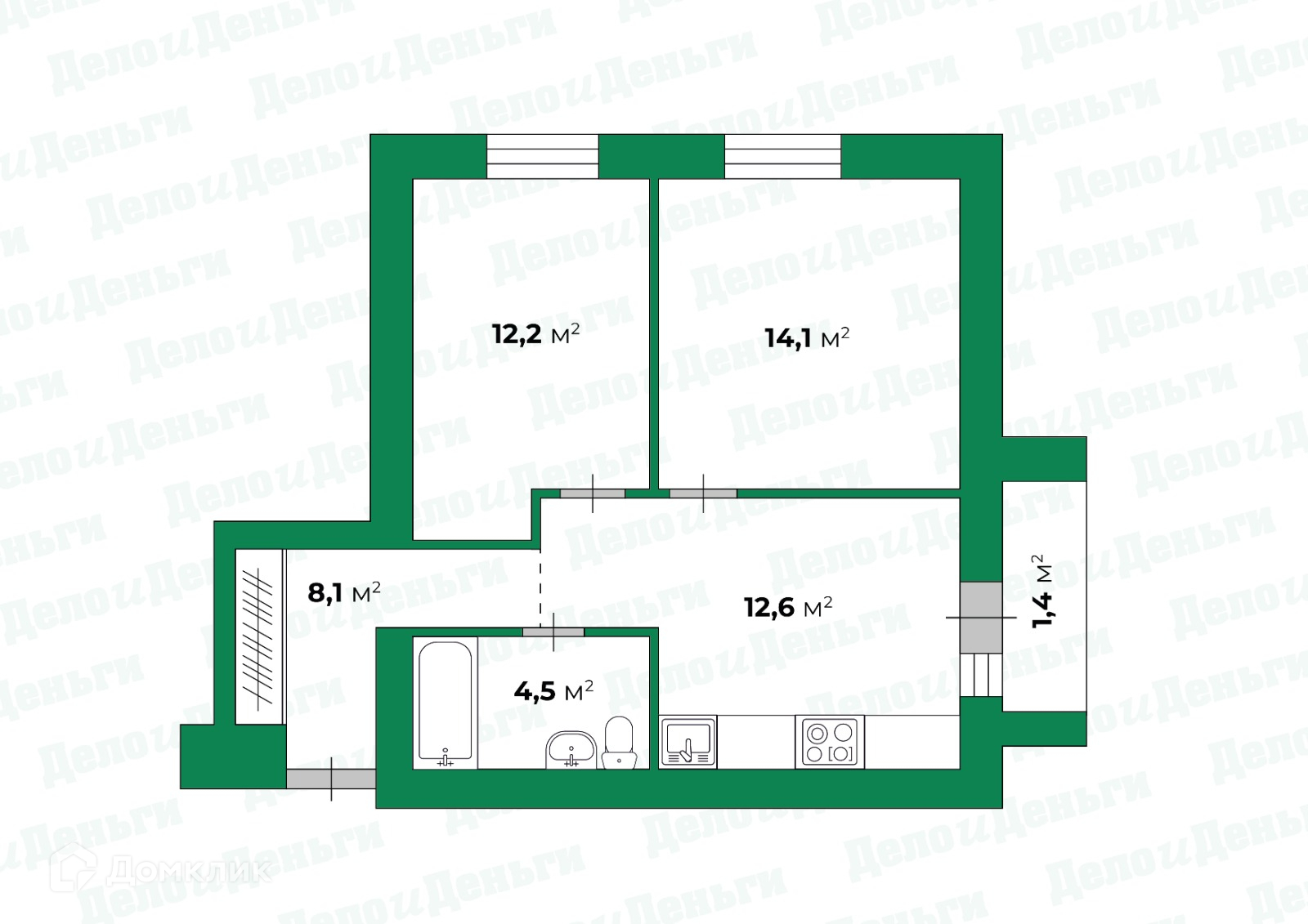 Жилая площадь 26.1 м2