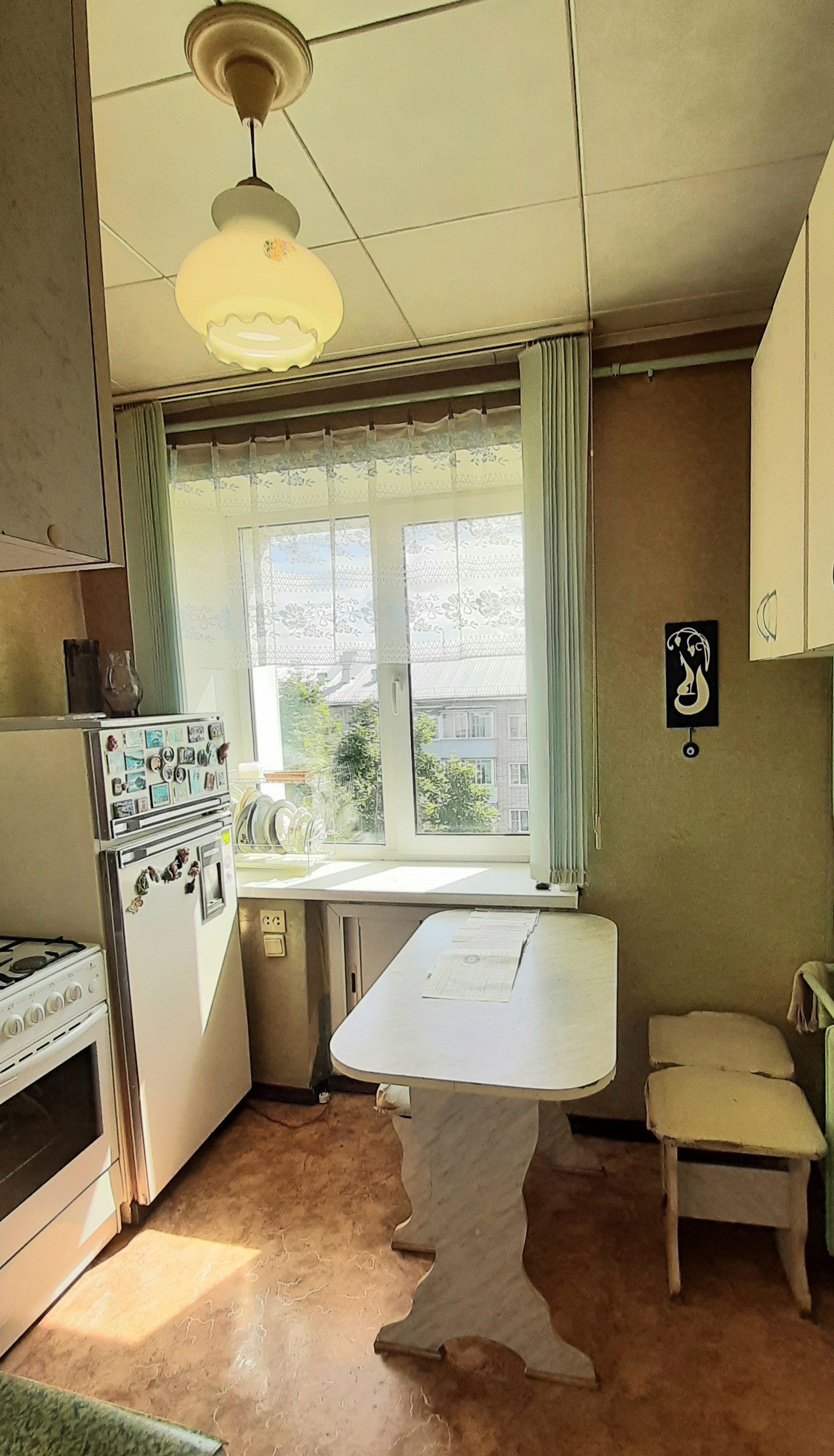 Квартира находится на последнем, пятом этаже пятиэтажного кирпичного дома, построенного в 1979 году. Жилая площадь составляет 44 квадратных метра, что предоставляет достаточно места для жизни большой семьи или нескольких человек. Кухня имеет площадь 6.1 квадратных метров, где можно удобно разместить необходимую бытовую технику и мебель.