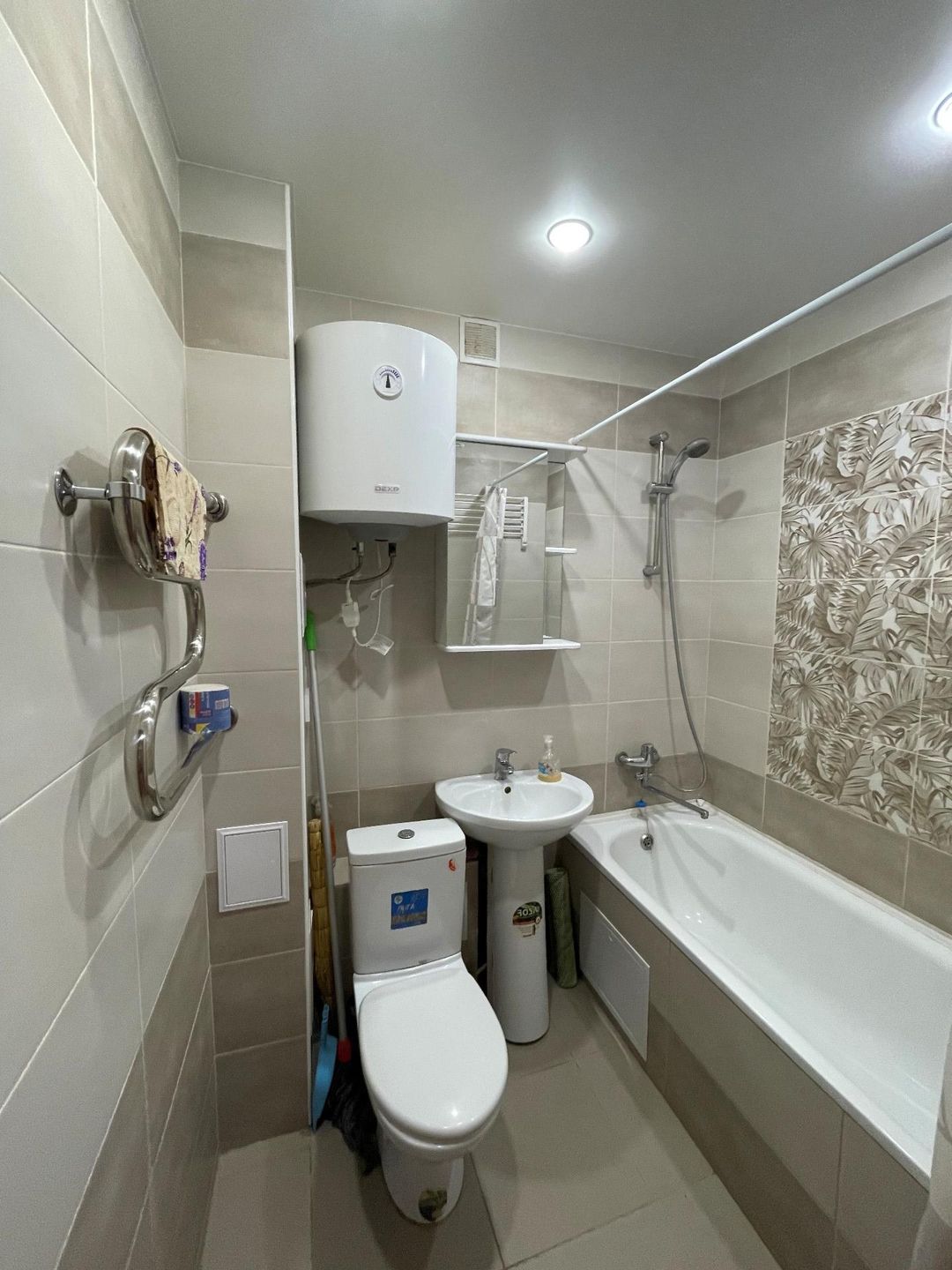 • напольное покрытие ламинат, в ванной - керамическая плитка, пластиковые окна