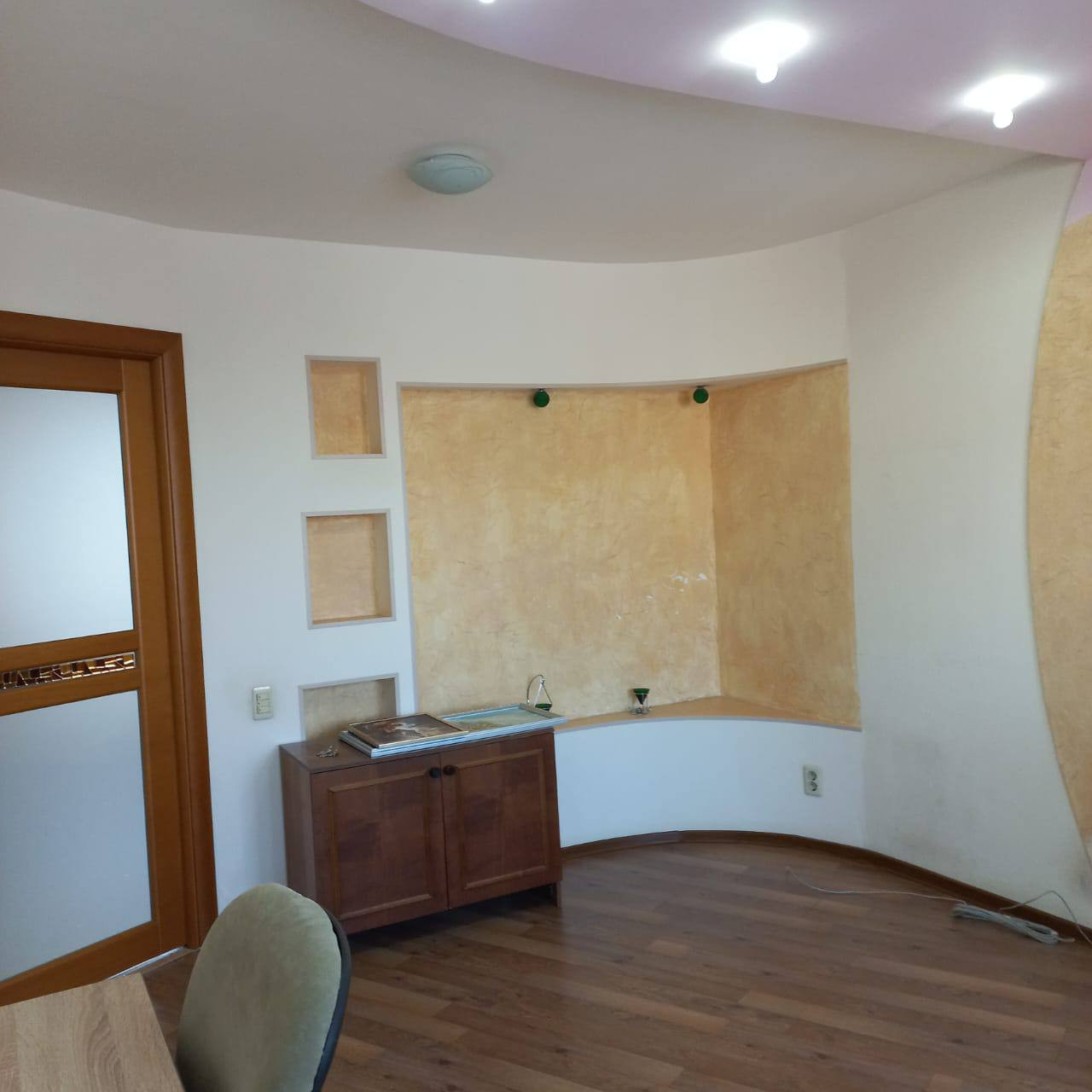 Вторая комната 16 кв.м. с выходом на лоджию, многоуровневым освещением, отличным напольным покрытием. Есть возможность оставить большой письменный стол и новый комод.