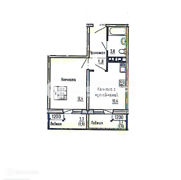 * Квартира не угловая. Общая площадь: 35 кв.м., жилая: 22 кв.м., кухня-гостиная: 10 кв.м., санузел совмещён.
