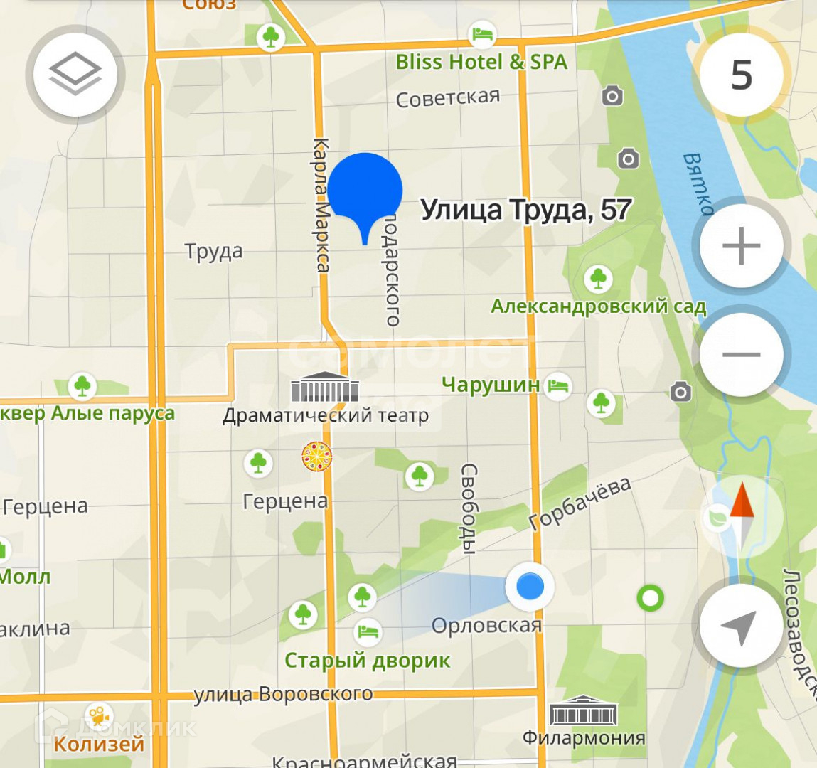 2-комнатная квартира, 44 м2, этаж 1 / 5, на продажу в Кирове, улица Труда, 57