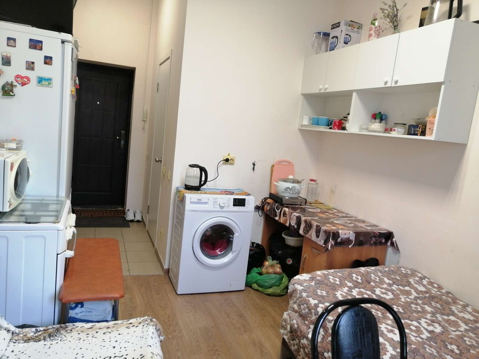 Общая площадь 16 м2, включающая совмещенный санузел и зону кухни, оборудованная всем необходимым.