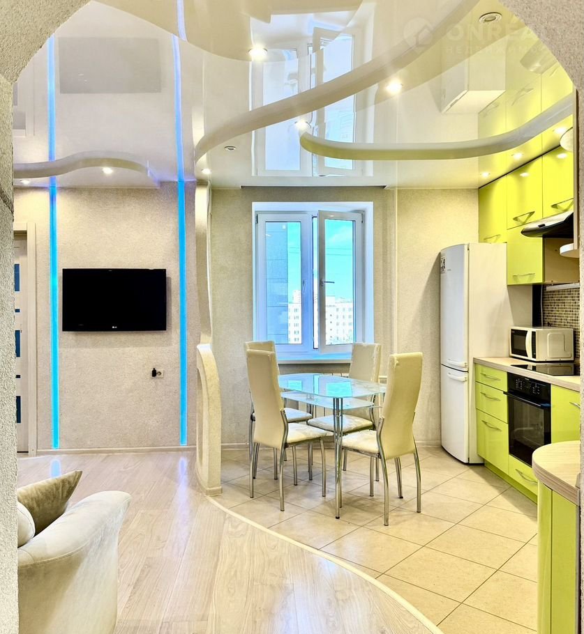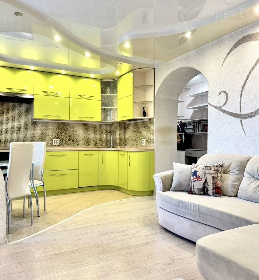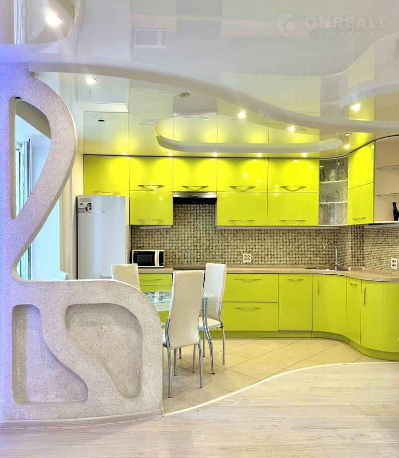 - натяжной потолок в кухне-гостиной.