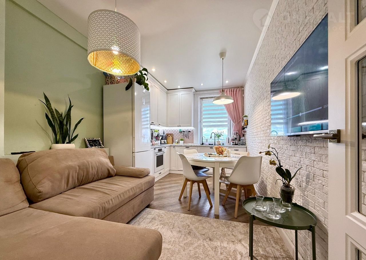 ✔ Эргономичную кухню - столовую, совмещенную с гостиной площадью 13,1 м²