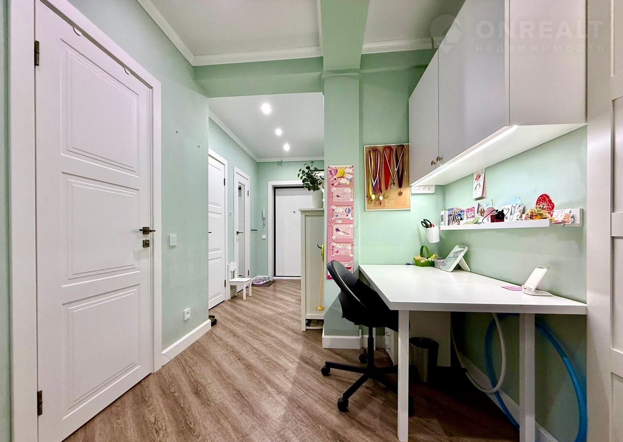 ✔ Просторную входную группу площадью 11,5 м² где в нише обустроено функциональное рабочее место.