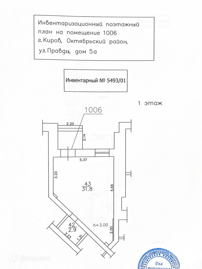 Офис, 34.7 м2, на продажу в Кирове, улица Правды, 5А