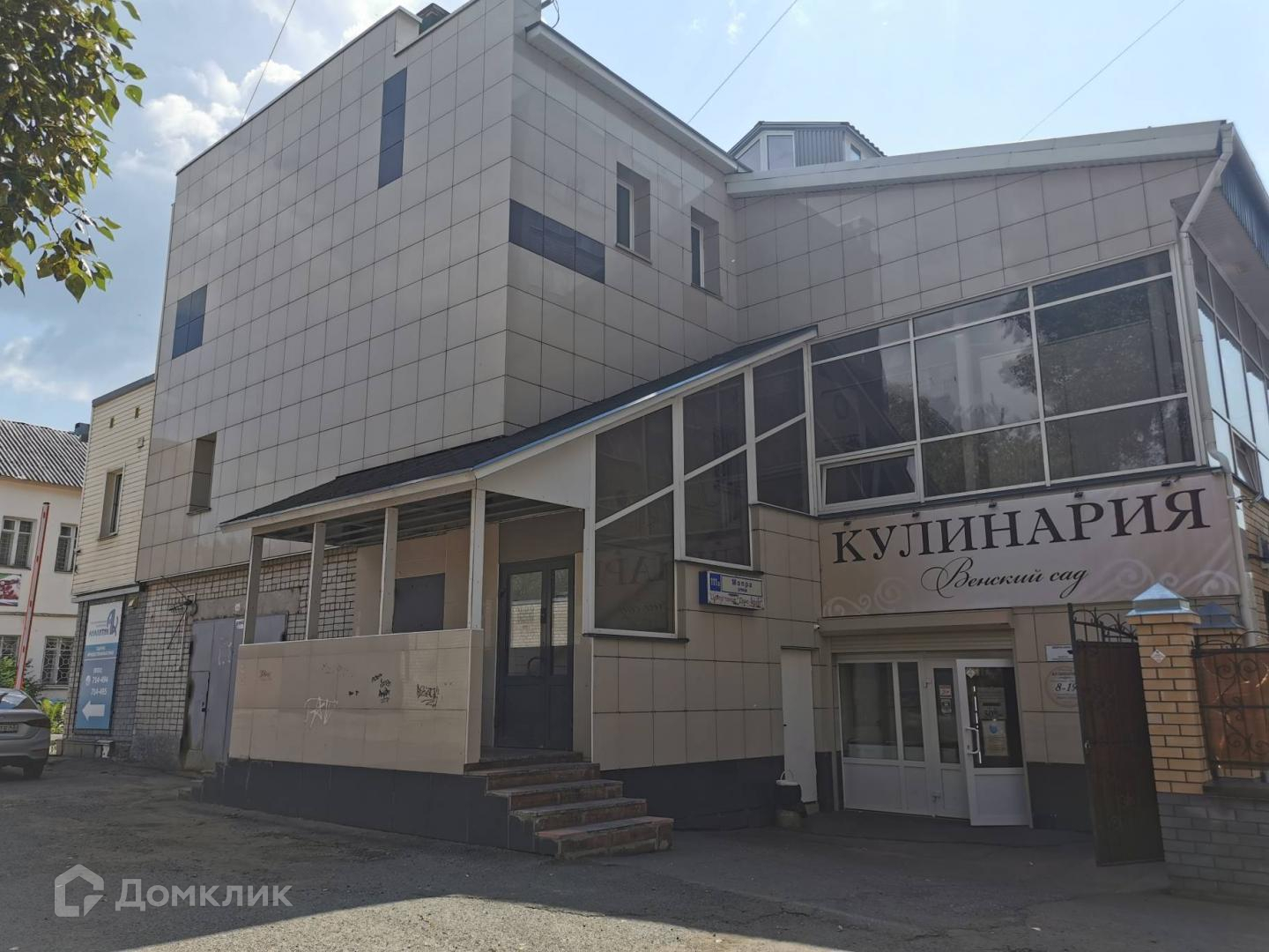 Здание кирпичное, трехэтажное. На первом этаже располагается кафе и кулинария, на втором и третьем этажах танцевальные залы и офисные помещения. Метраж второго этажа 192 квм, третьего 198 квм. Объекты продаются как вместе, так и по отдельности. Перед зданием — парковка.