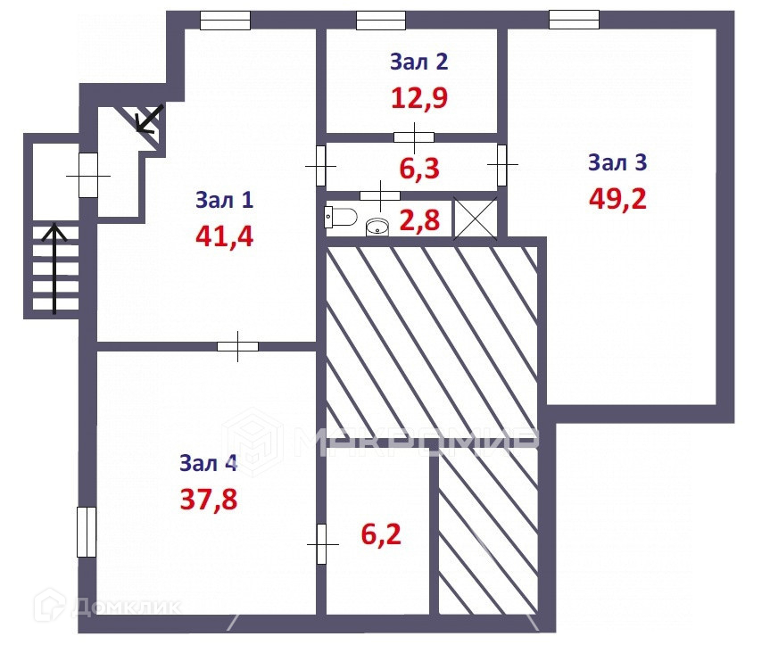 Общая площадь 155 м кв, состоит из 3-х просторных залов, 1-го по меньше, кладовой и санузла.