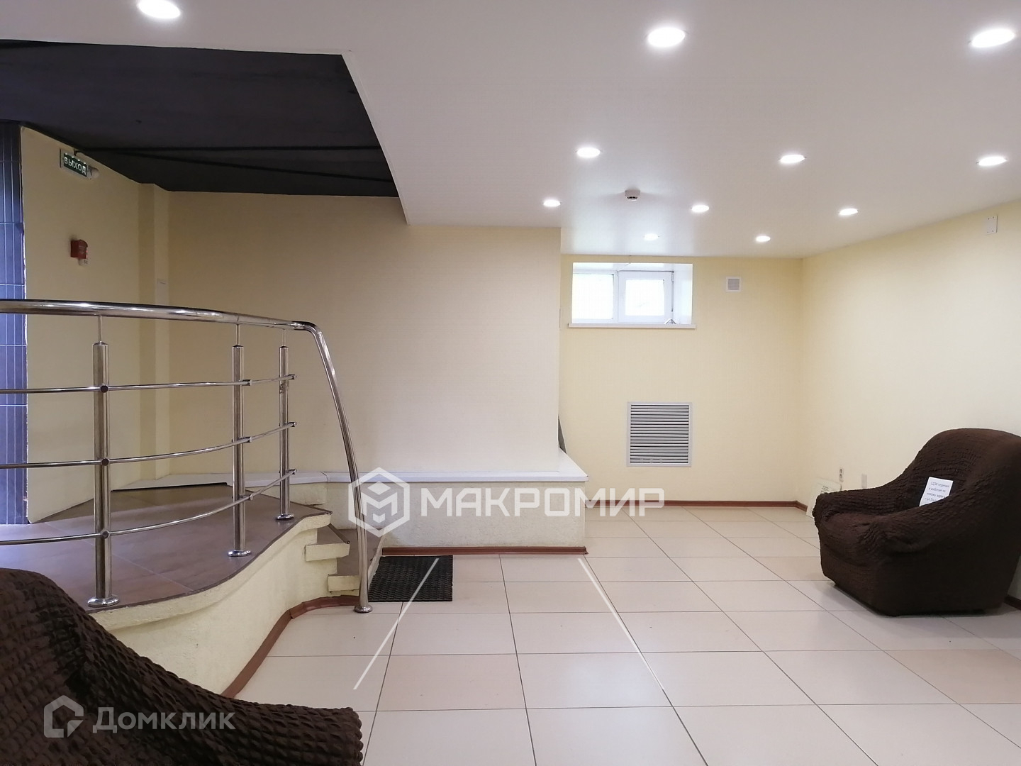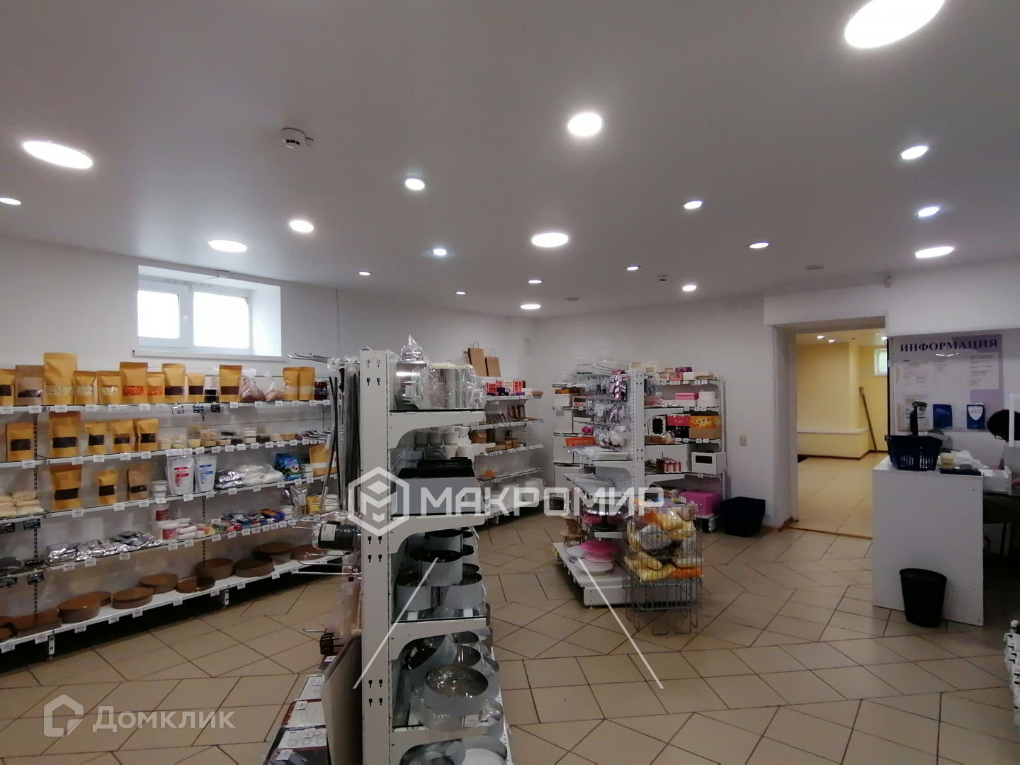 Вход отдельный, со двора. Цоколь. В данный момент один из залов занимает магазин Кондитер.