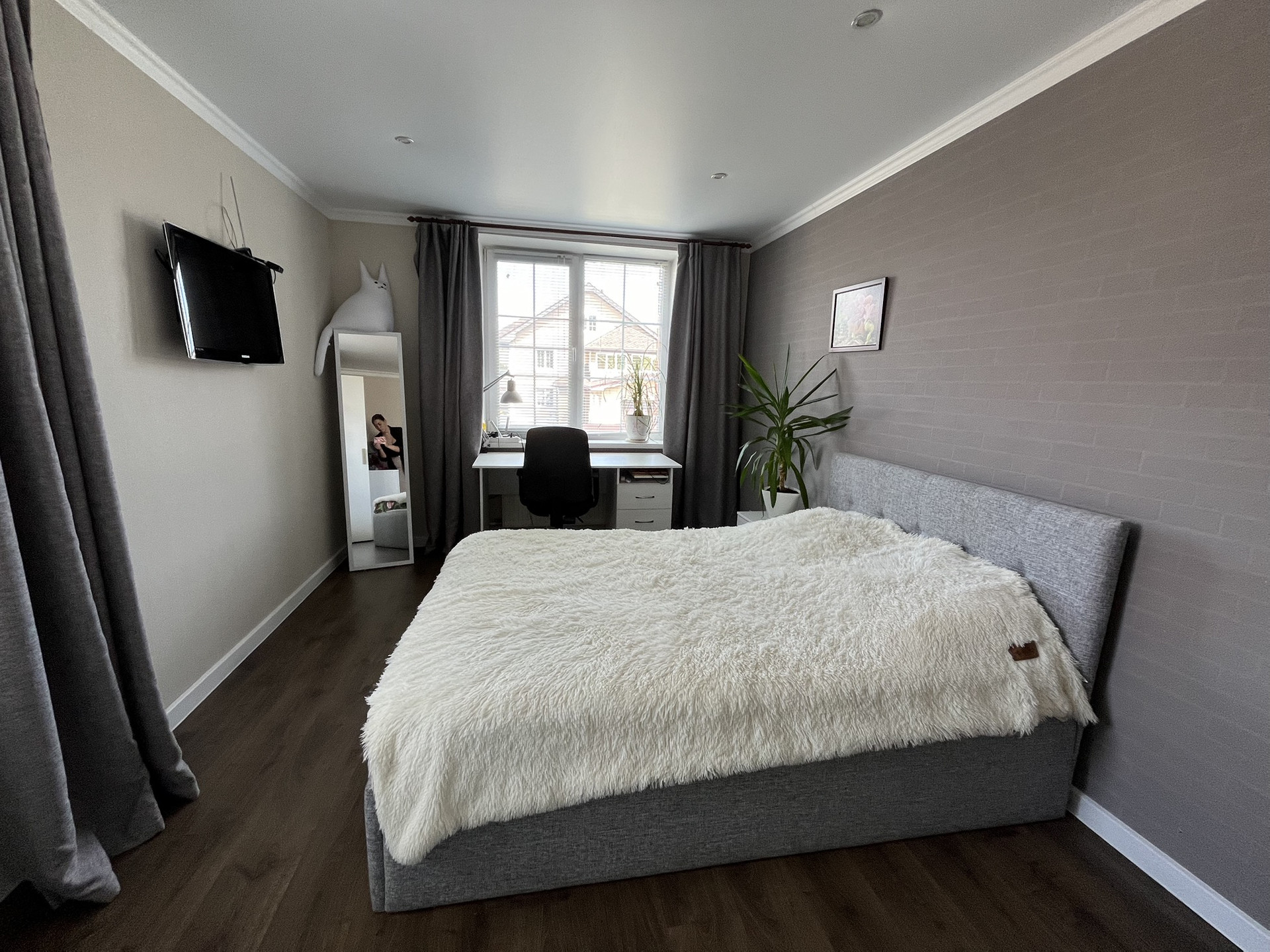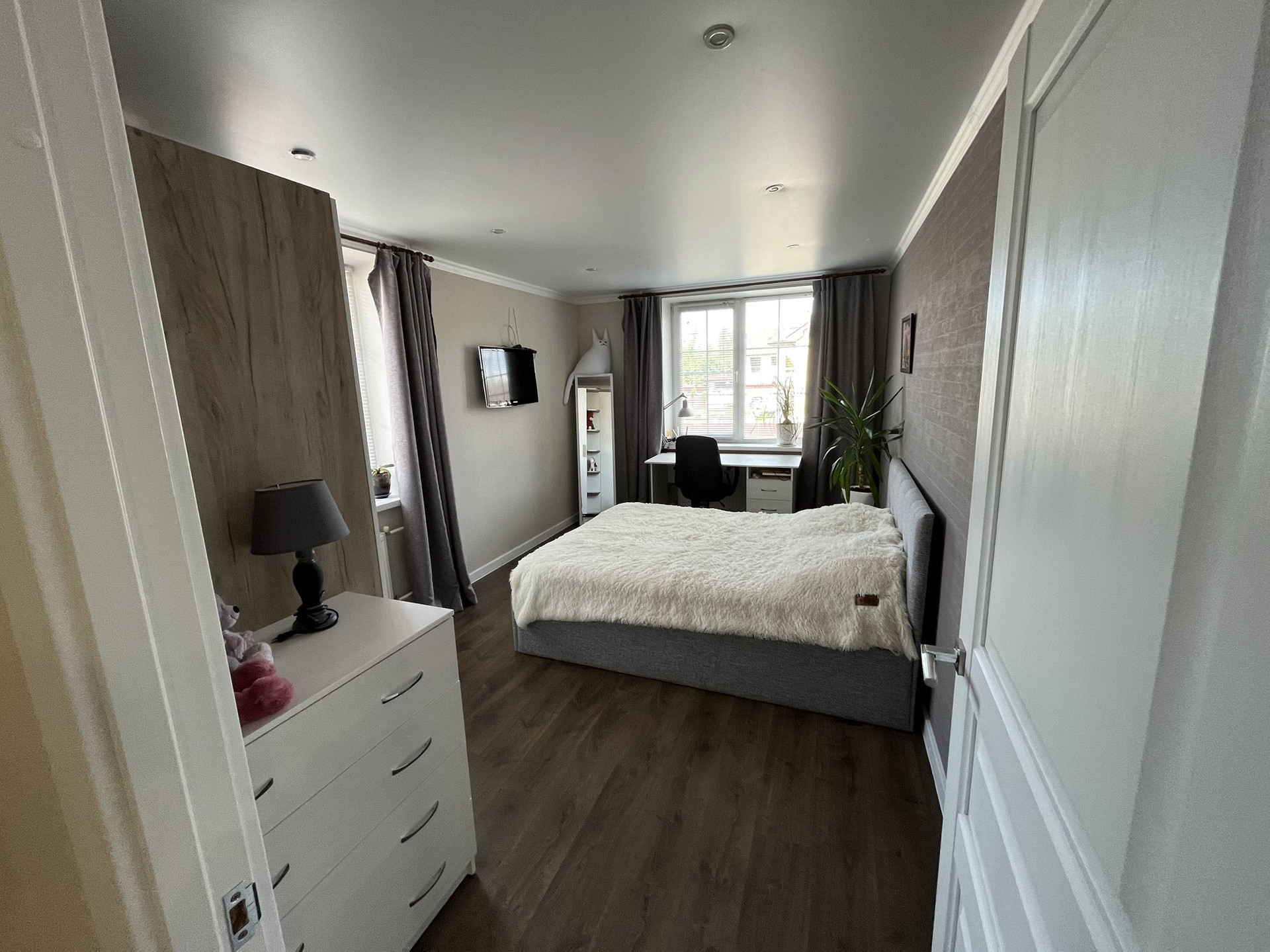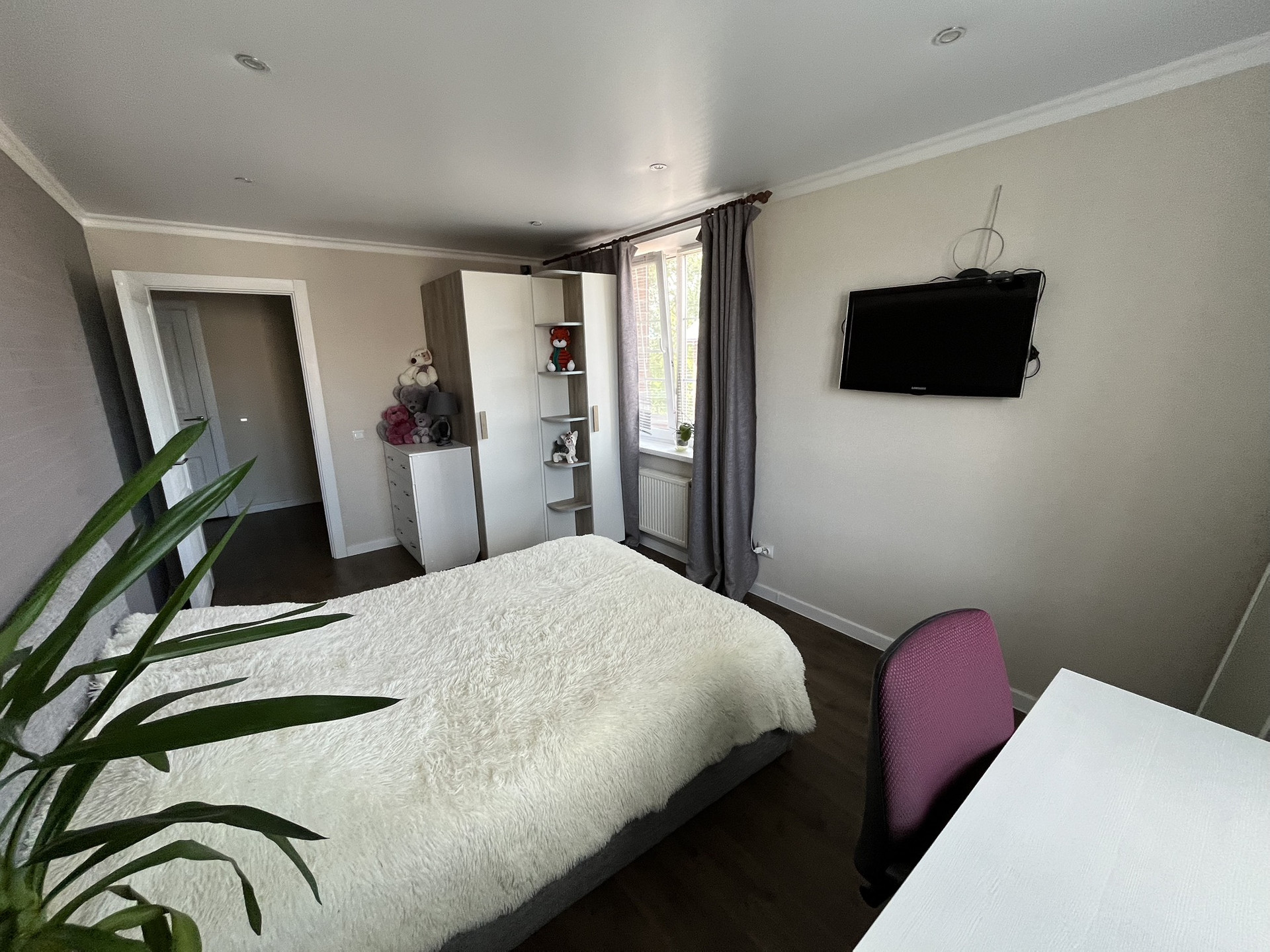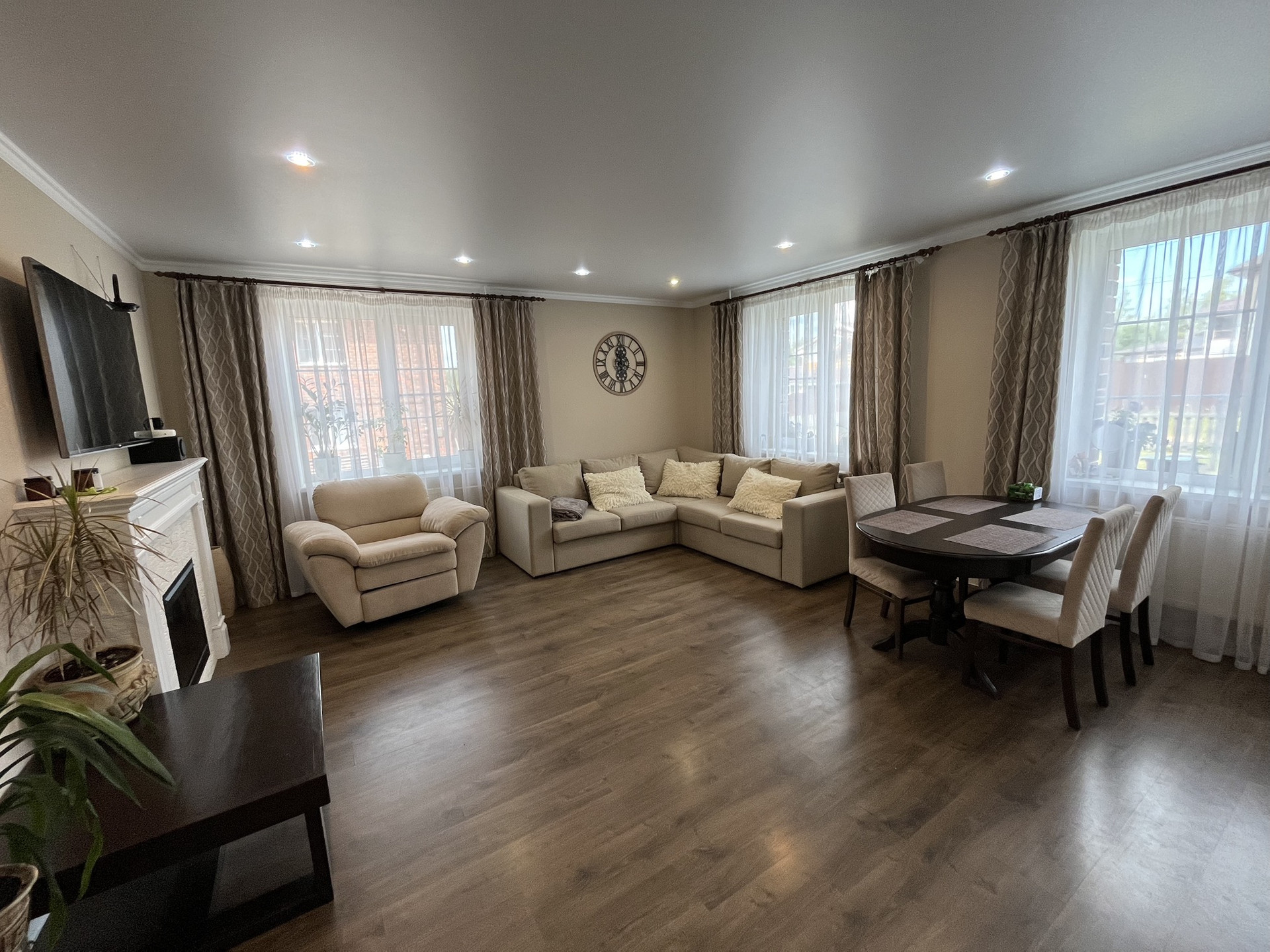 * В квартире выполнен современный ремонт (свежий): потолки - натяжные; качественный пол - стяжка, керамическая плитка, качественный ламинат, обои под покраску. Окна - пластиковые стеклопакеты. Санузлы - керамическая плитка. Кухня с техникой (варочная поверхность, духовой шкаф, вытяжка, холодильник, посудомоечная машина, микроволновая печь). Конструктив лестницы на 2 и 3 этажи - массив хвойных, ограждение лестницы - перила. Так же остаётся мебель (диван, 2 кровати, 3 шкафа, комод, журнальный стол, обеденный стол + стулья, тумбочки, стеллаж, компьютерный стол и т.д.), готов к проживанию!