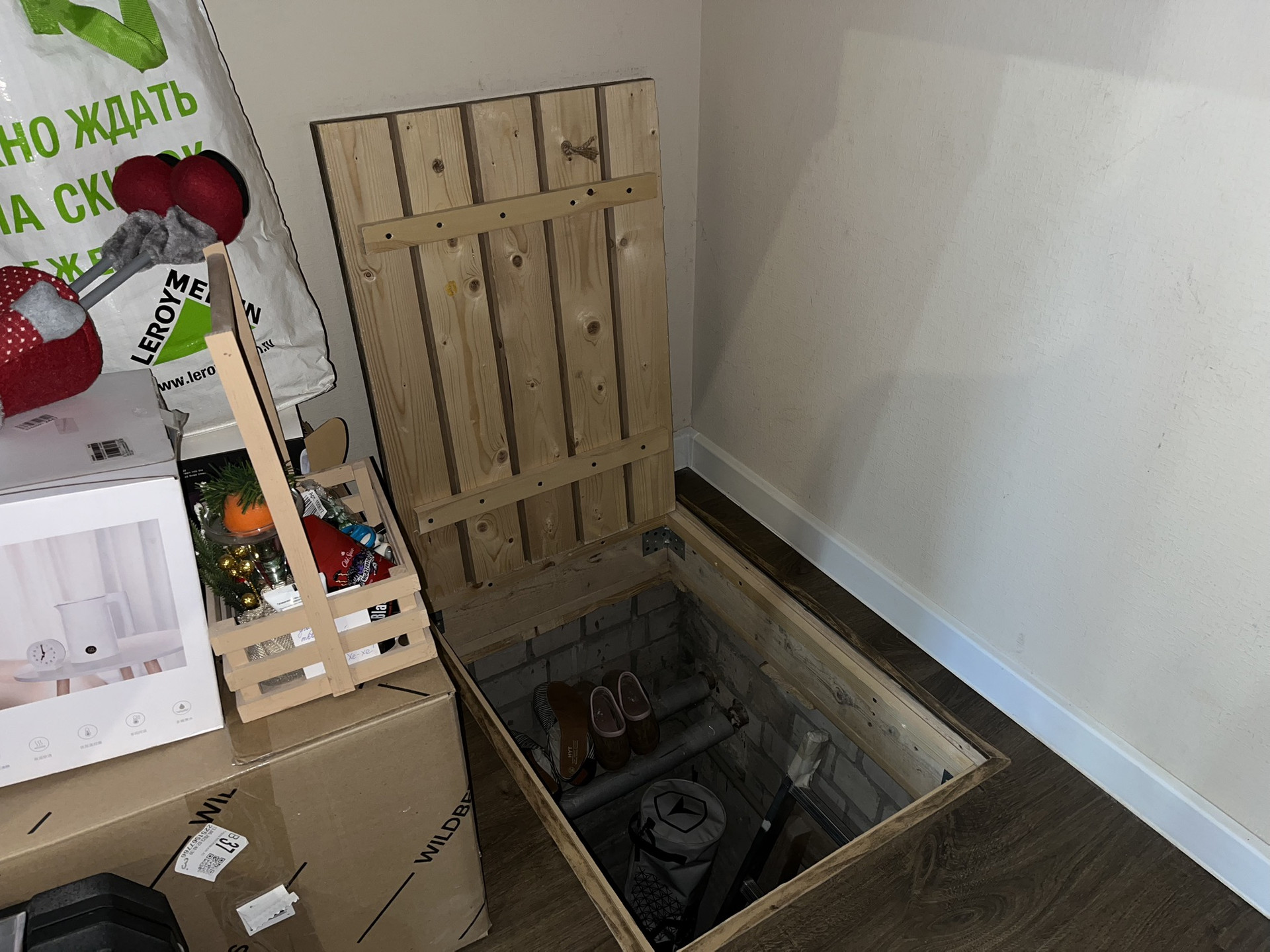 * Под полом первого этажа просторное помещение с доступом к коммуникациям.