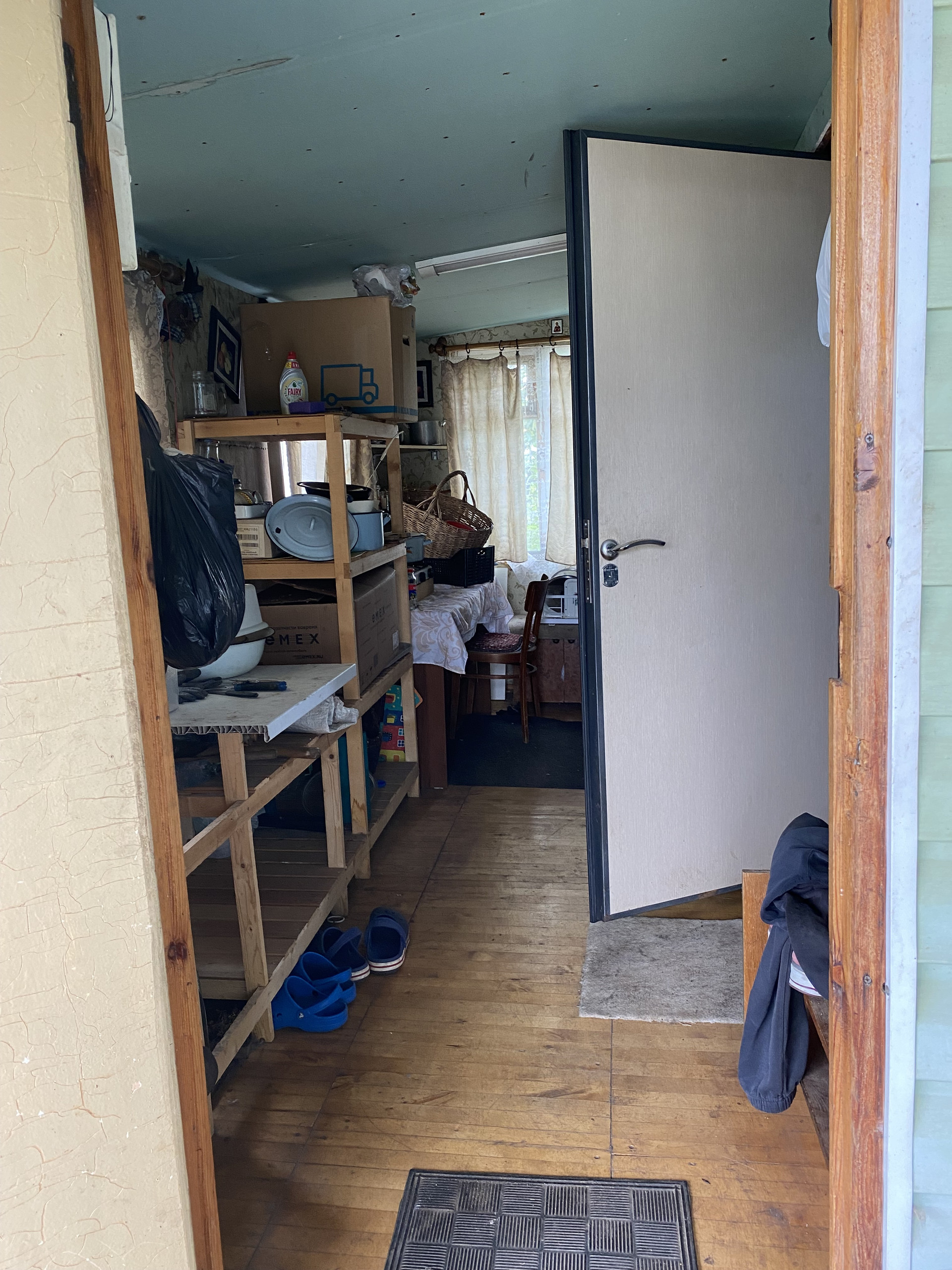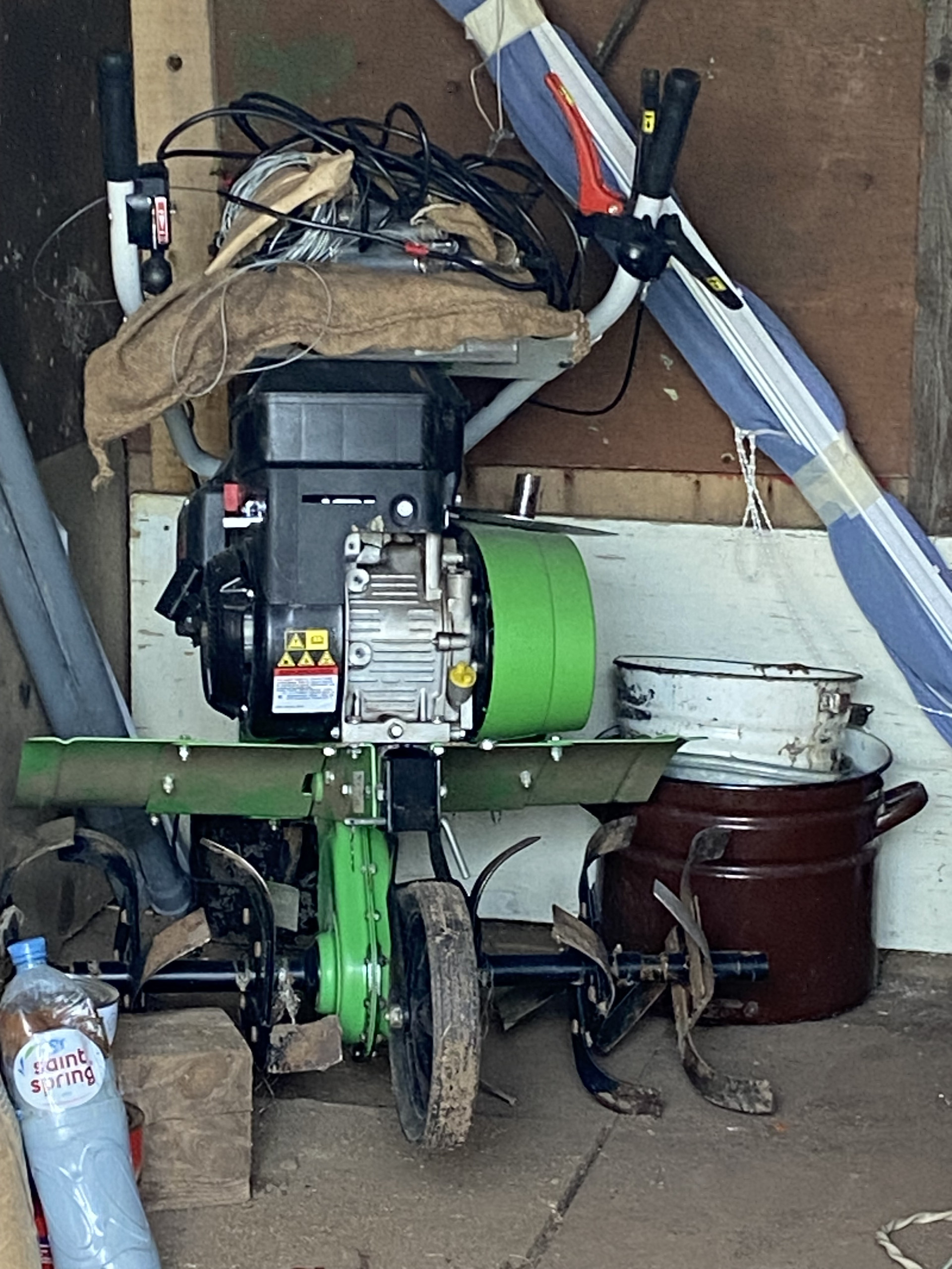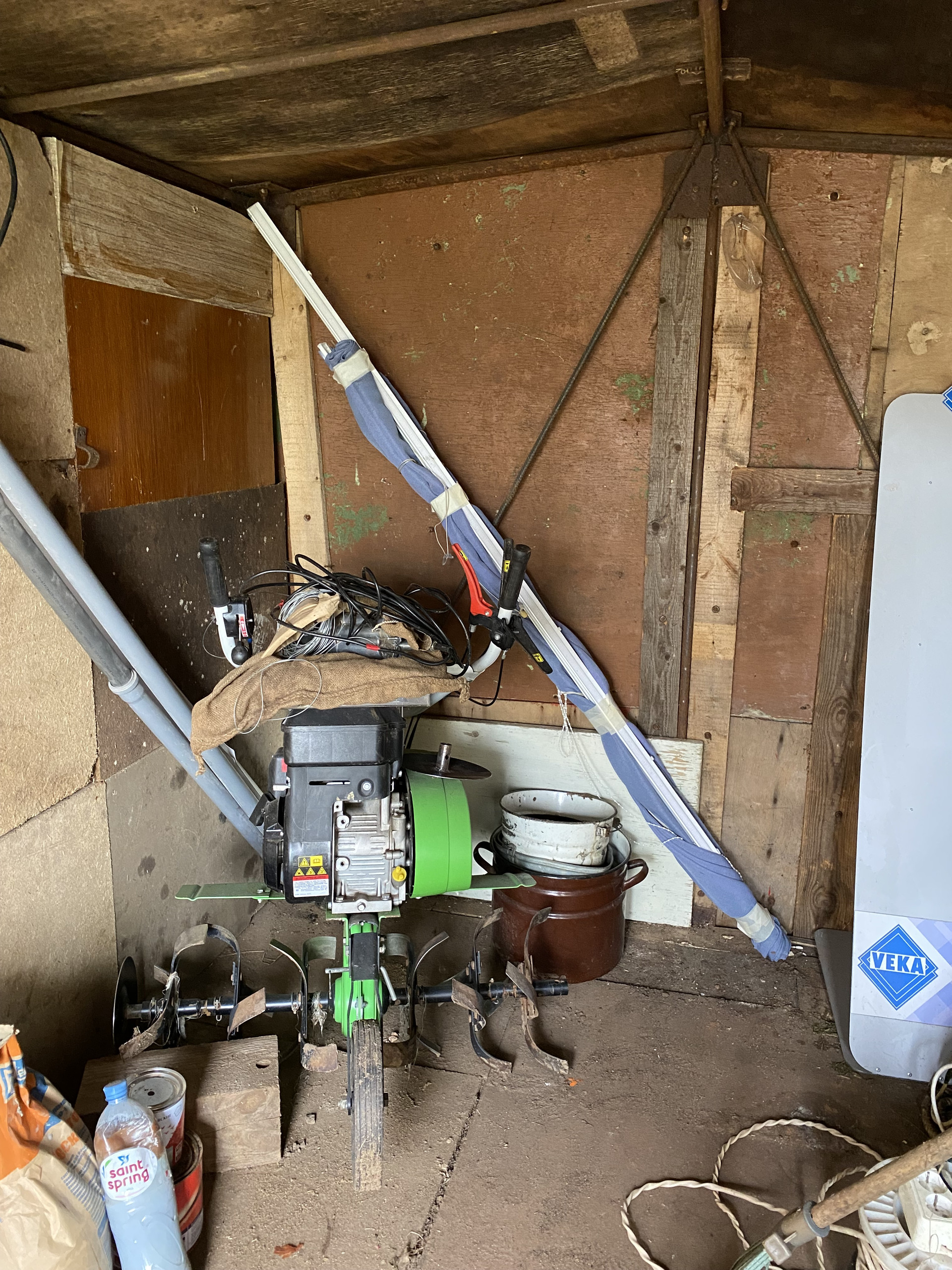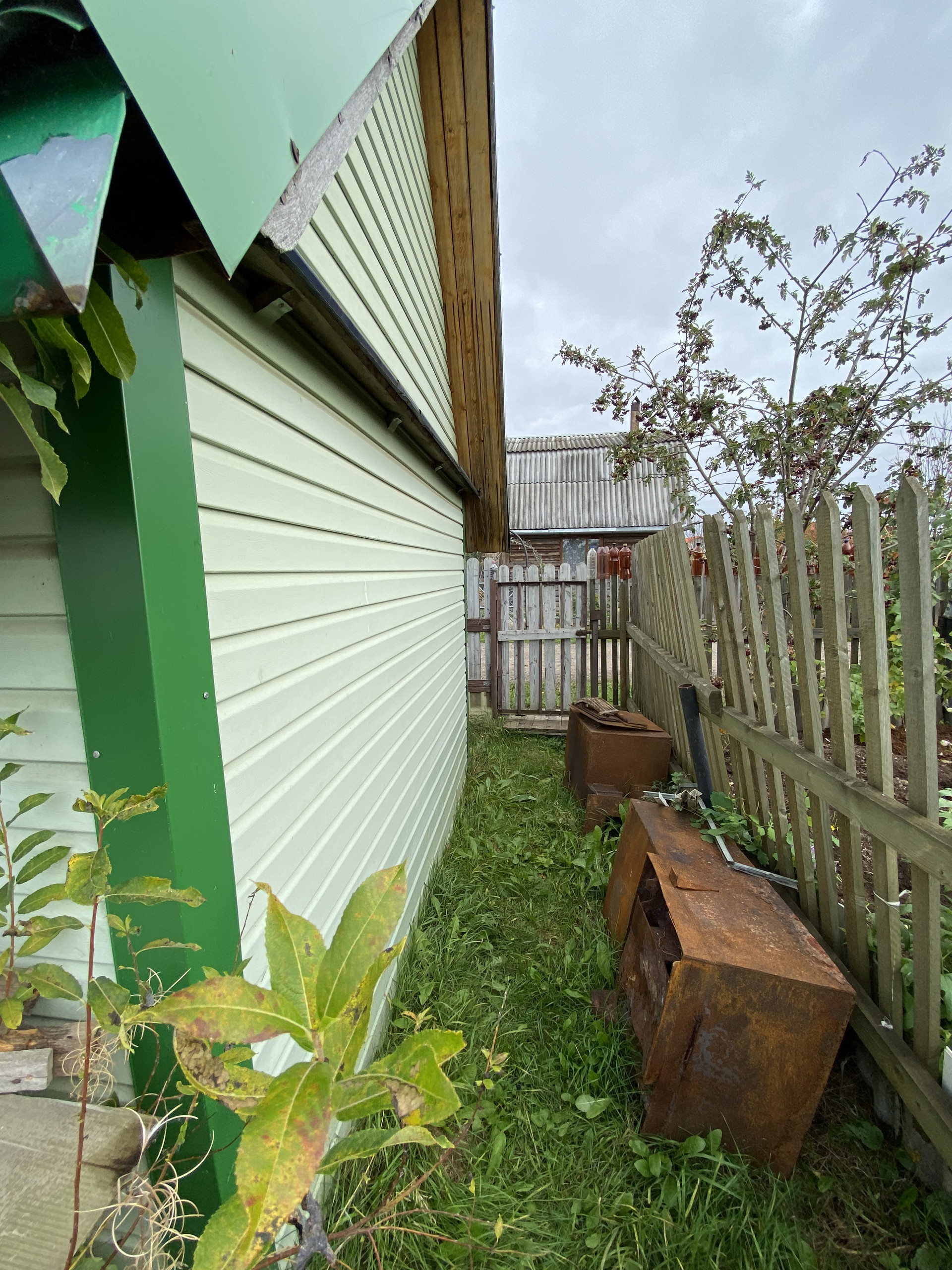 Много кустов малина, смородина, крыжовник ,  5 яблонь, груши. Земля удобрена. Остается запас навоза, опила и дров. Много инвентаря и бочек под воду.