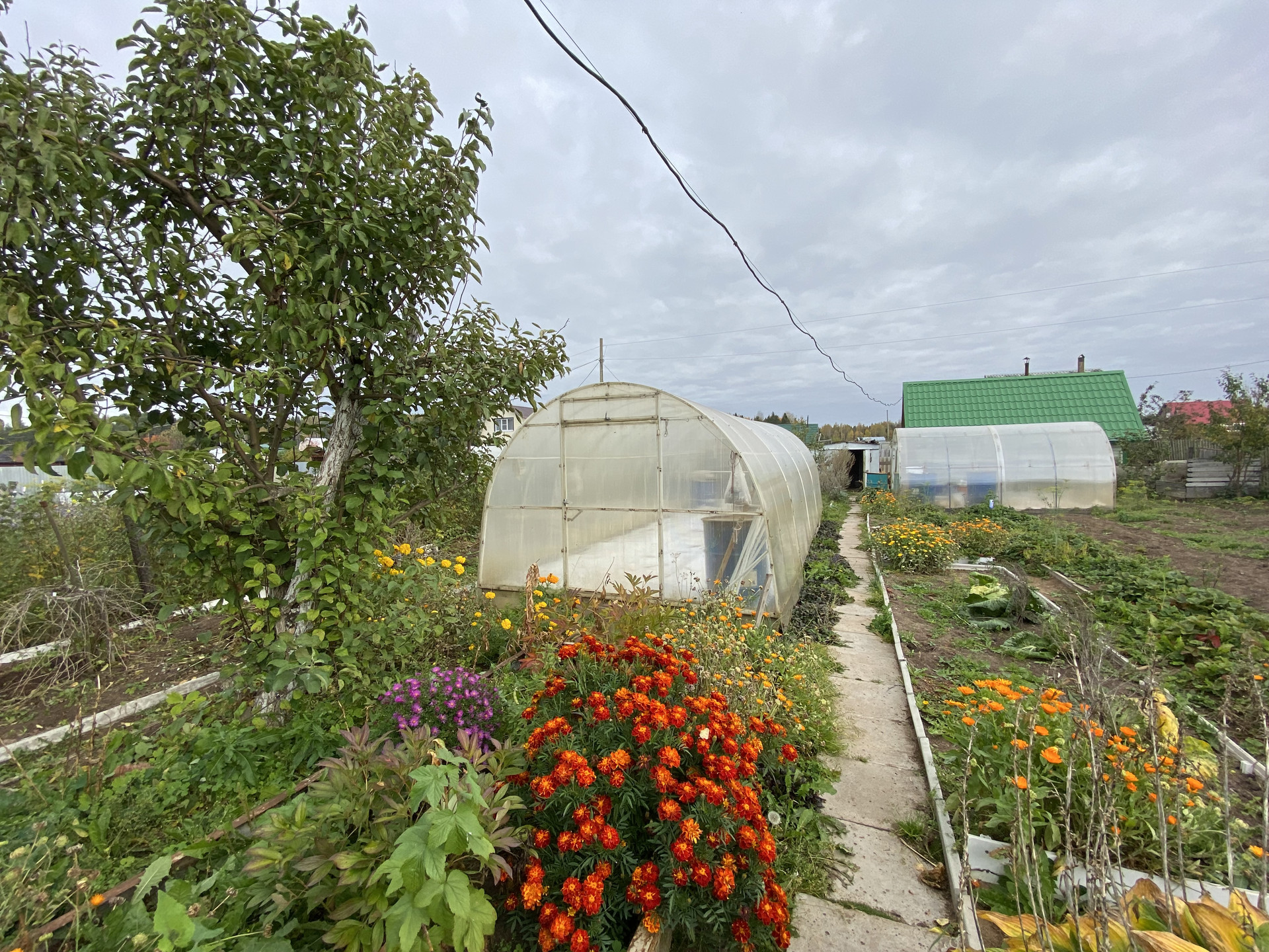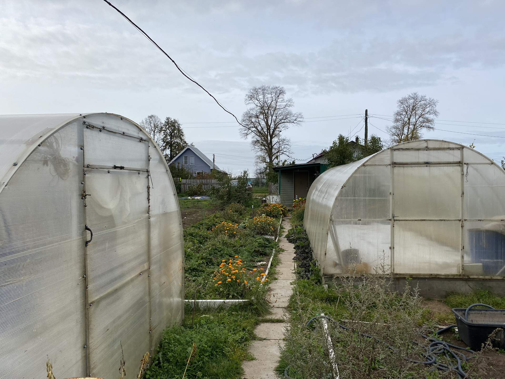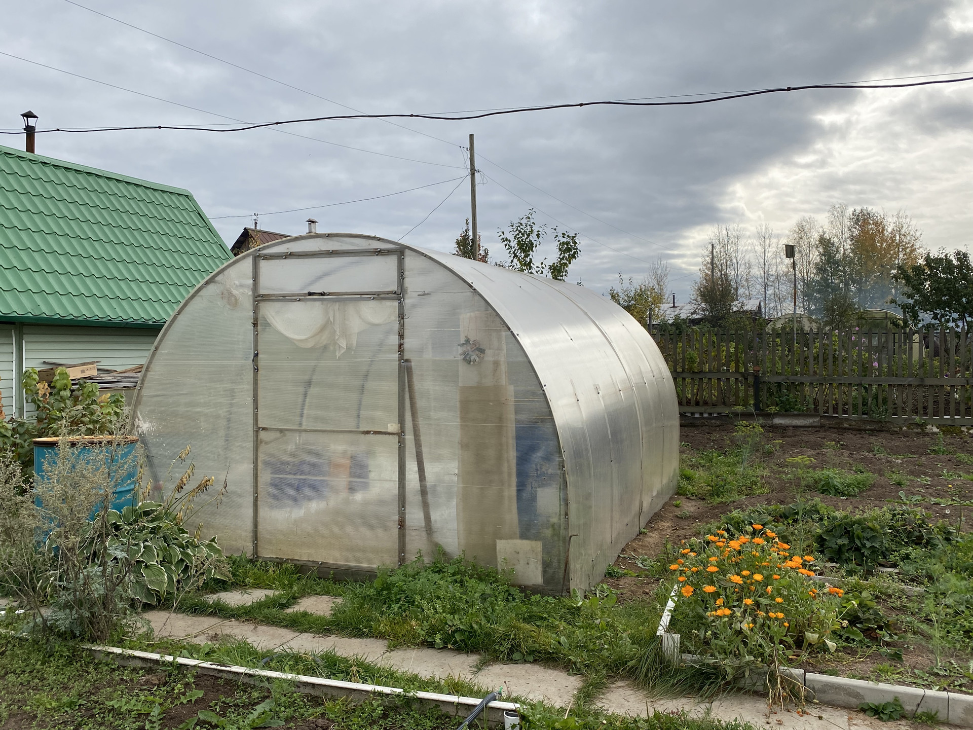 На участке находятся  две теплицы из поликорбаната  8*3 и 3*3.