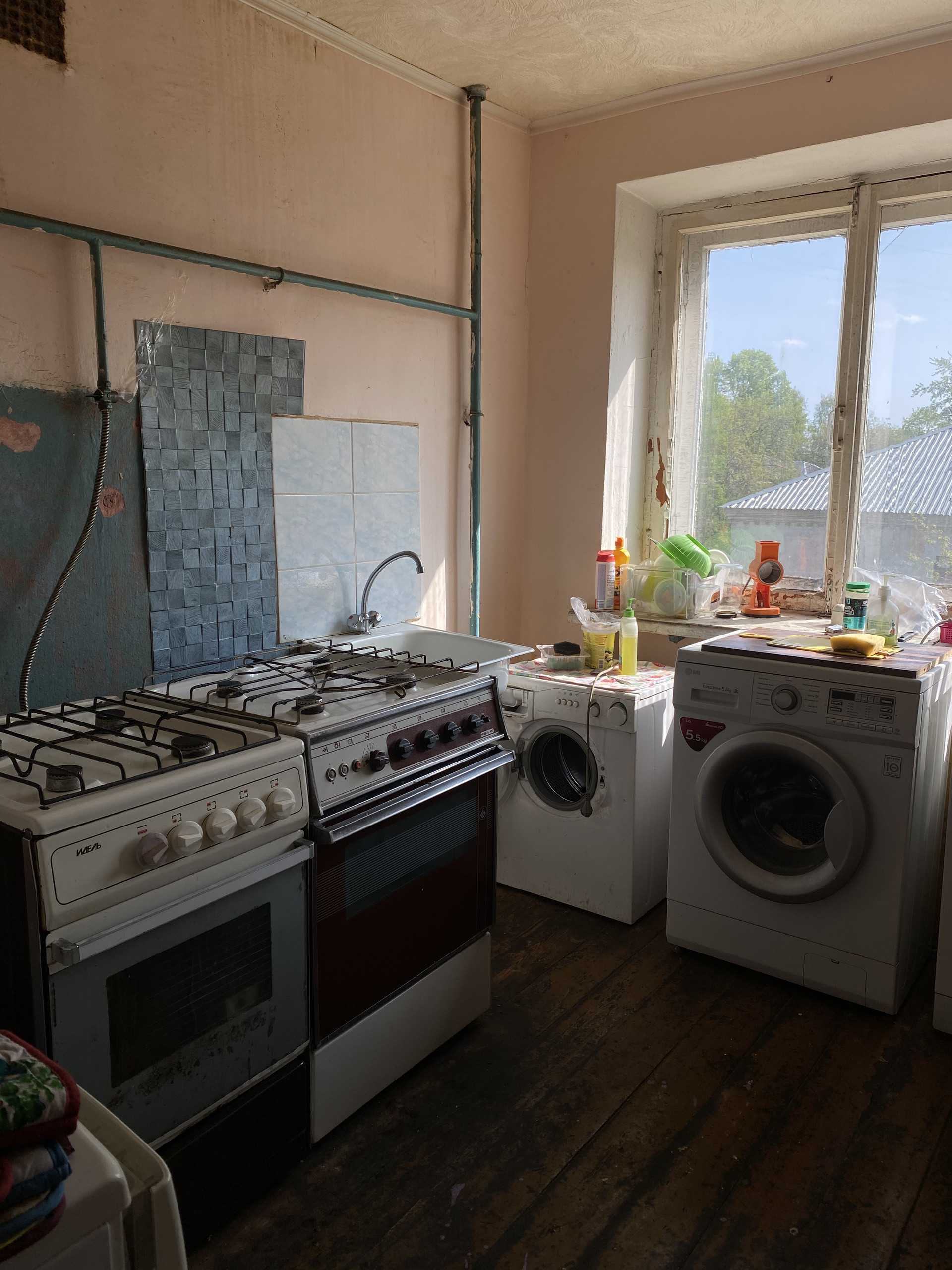 Туалет и кухня - места общего пользования, прибираются жильцами по очереди. Раздельный сан. узел, все запирается изнутри, есть горячая вода. На кухне две газ плиты, две раковины, свое отдельное место для готовки.