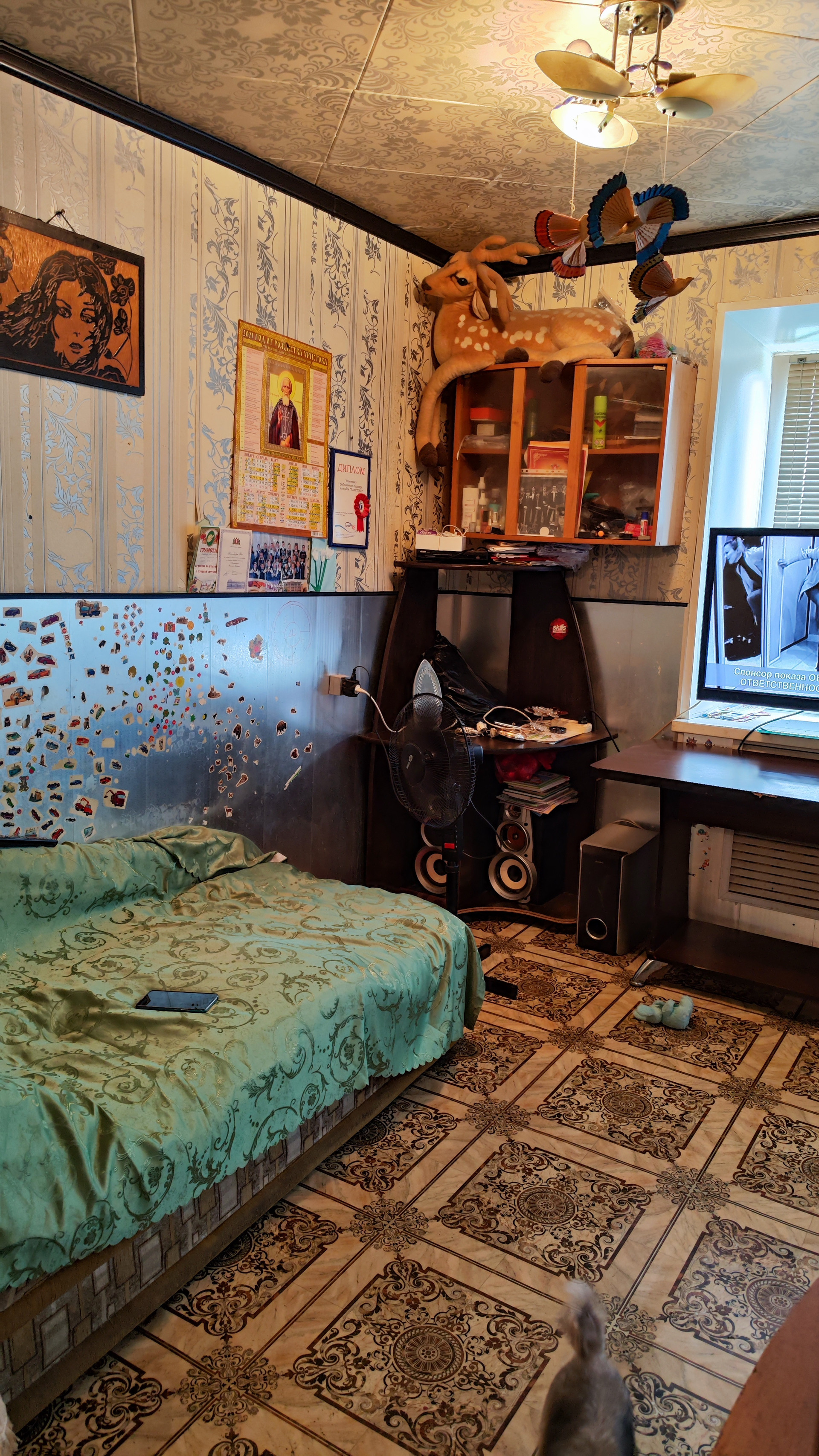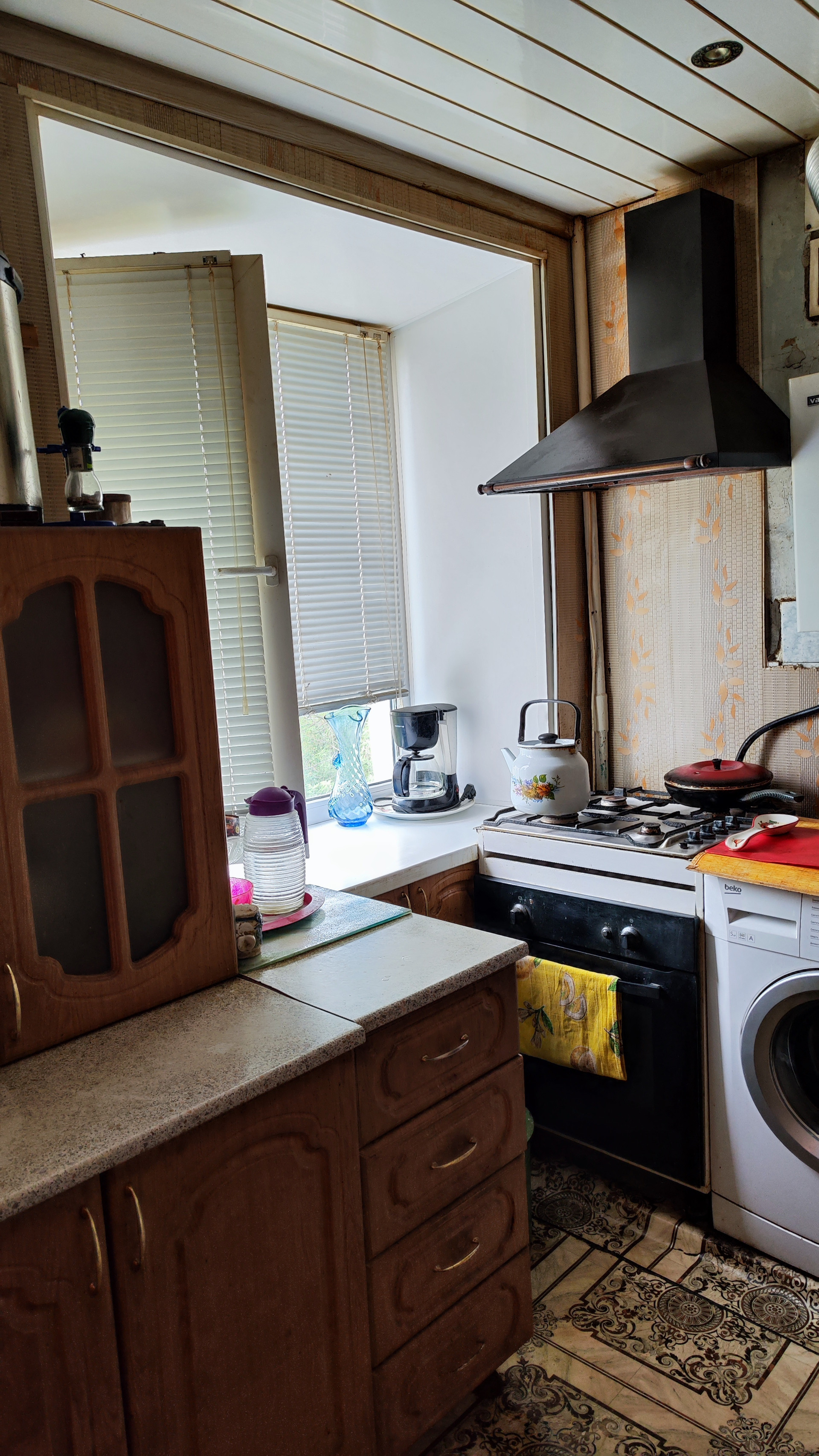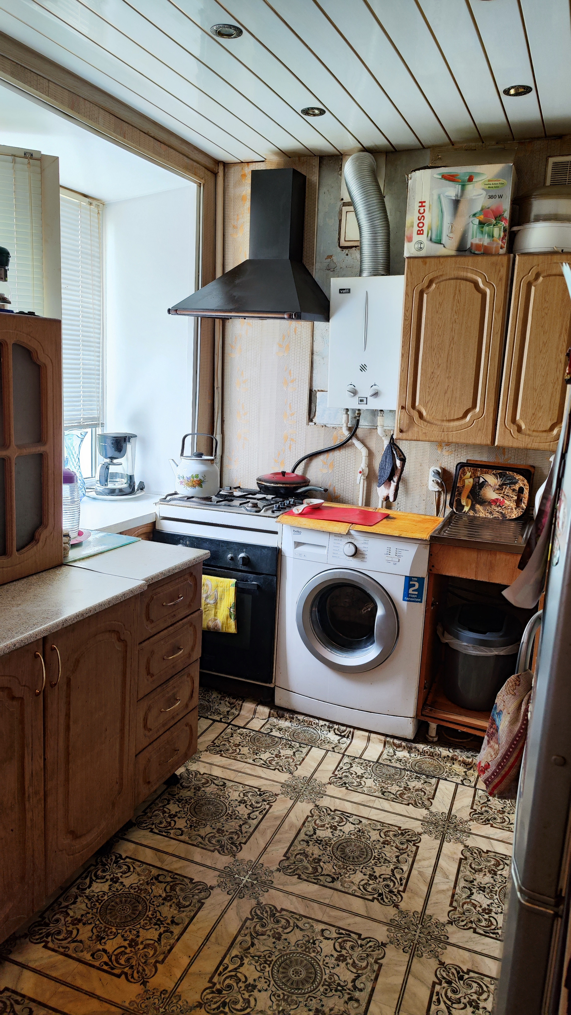 В квартире газовая колонка, пластиковые окна, шкаф-купе в комнате