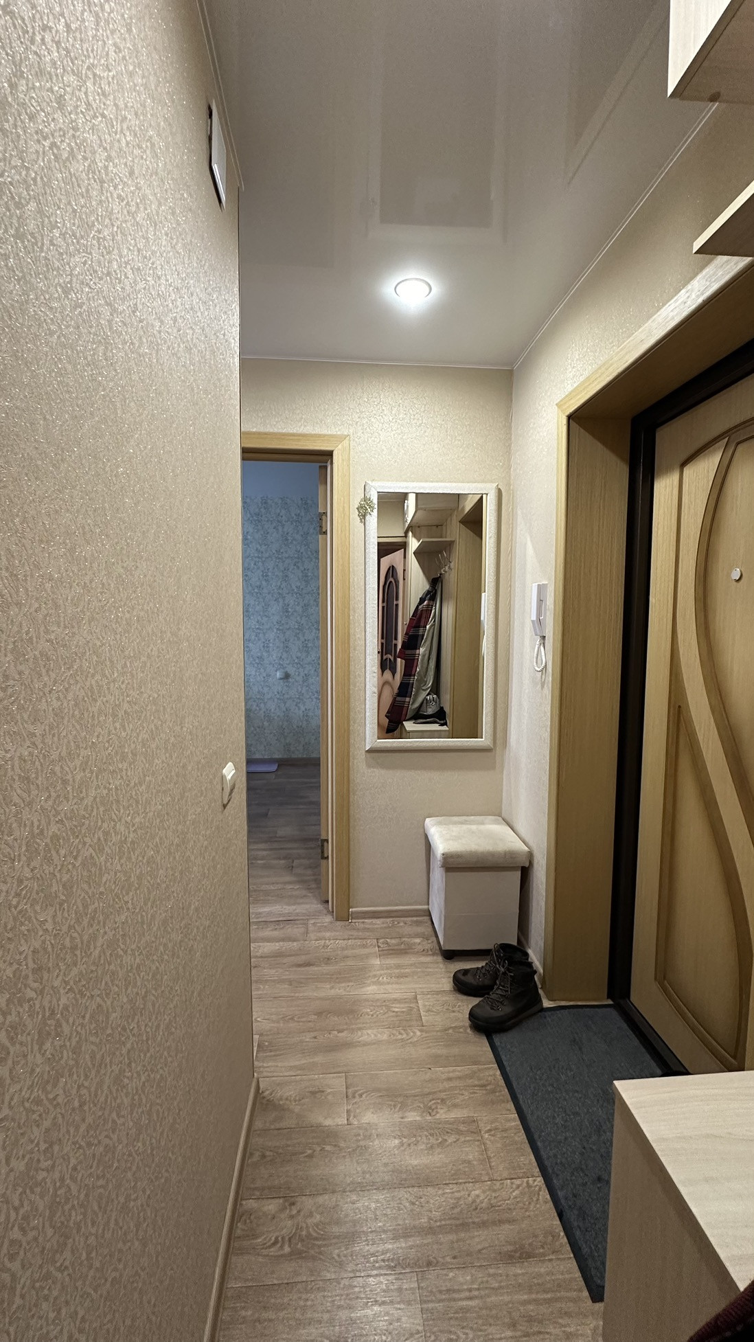 Квартира очень теплая, светлая, пластиковые окна, сантехника, водонагреватель, душевая кабинка, кухонный гарнитур, замена проводки, ровные стены и полы. Хорошие соседи, рядом магазины