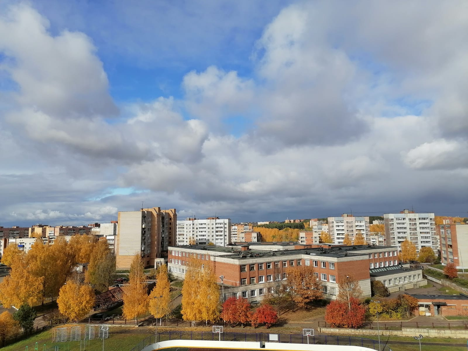 Во дворе школа, стадион.
