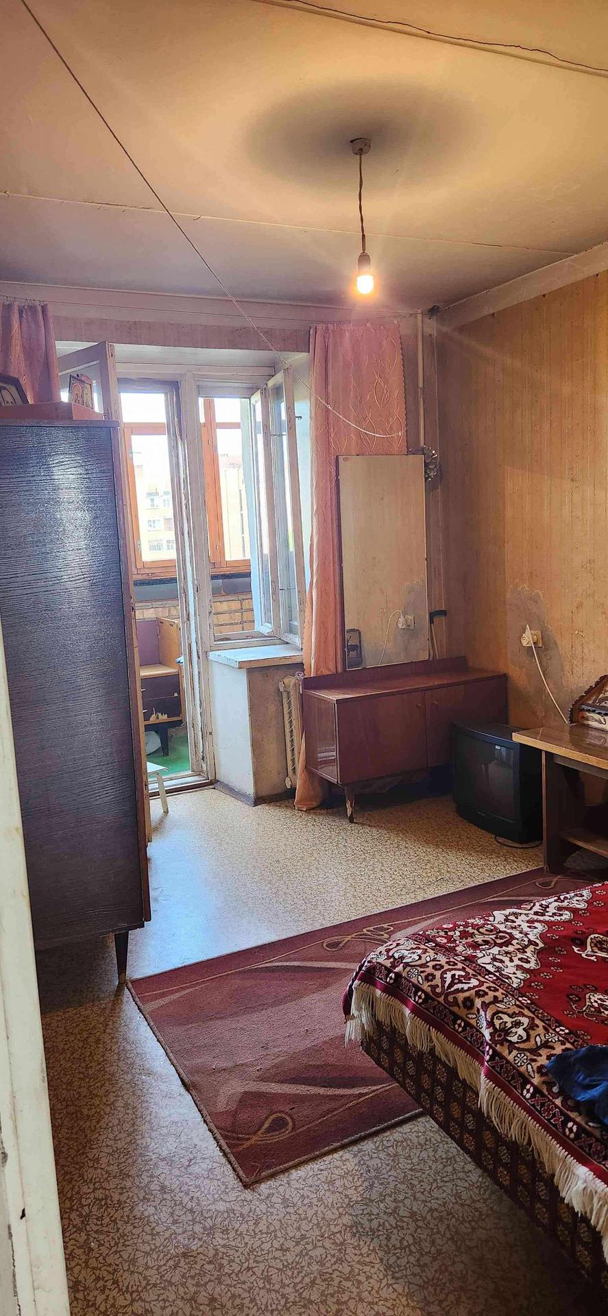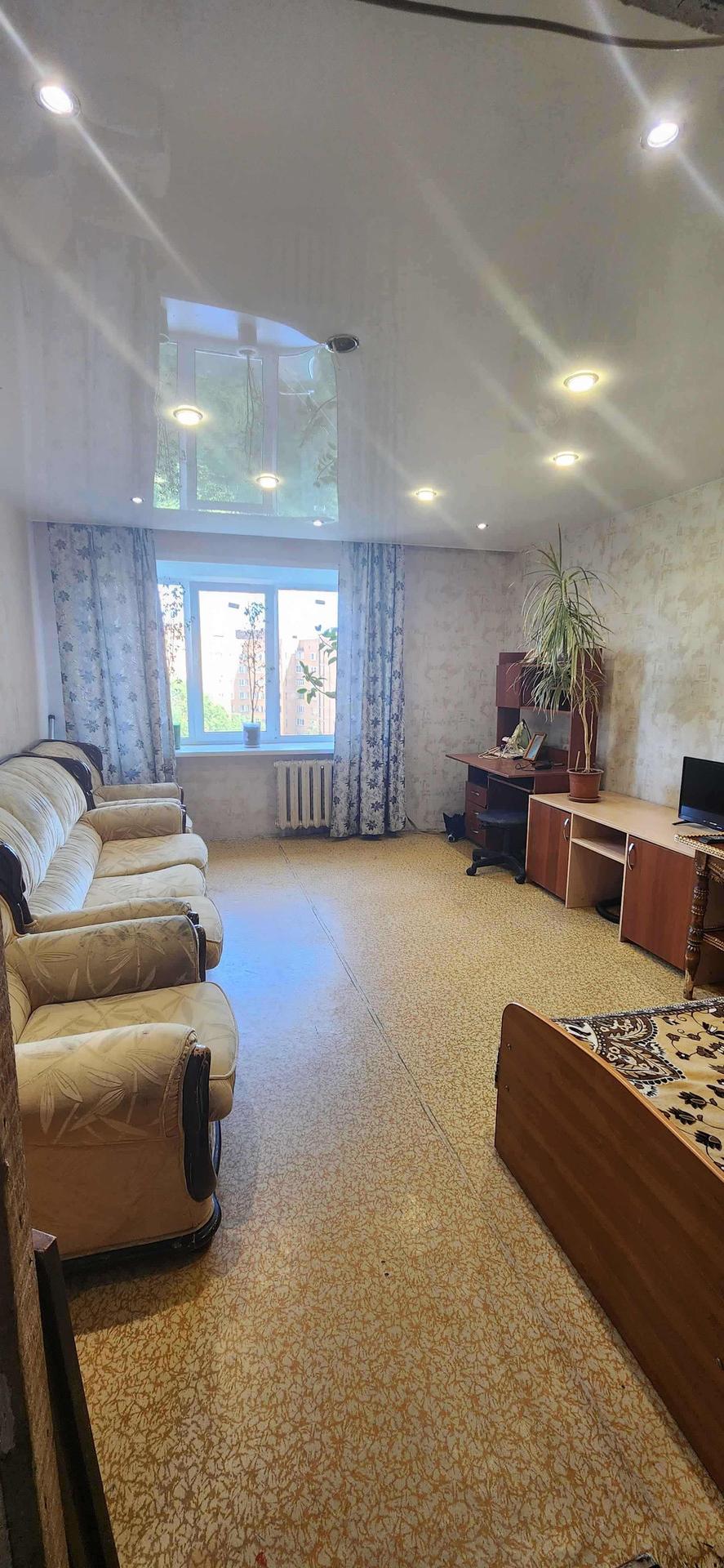 Продаю квартиру под ваш ремонт (2 лоджии).В гостиной -пластиковое окно и натяжной потолок, в детской -пластиковое окно. На воду установлены счетчики. Два собственника (есть детская доля и обременение). Возможен вариант обмена на 1 квартиру ( 7 мкр., Южный с доплатой).