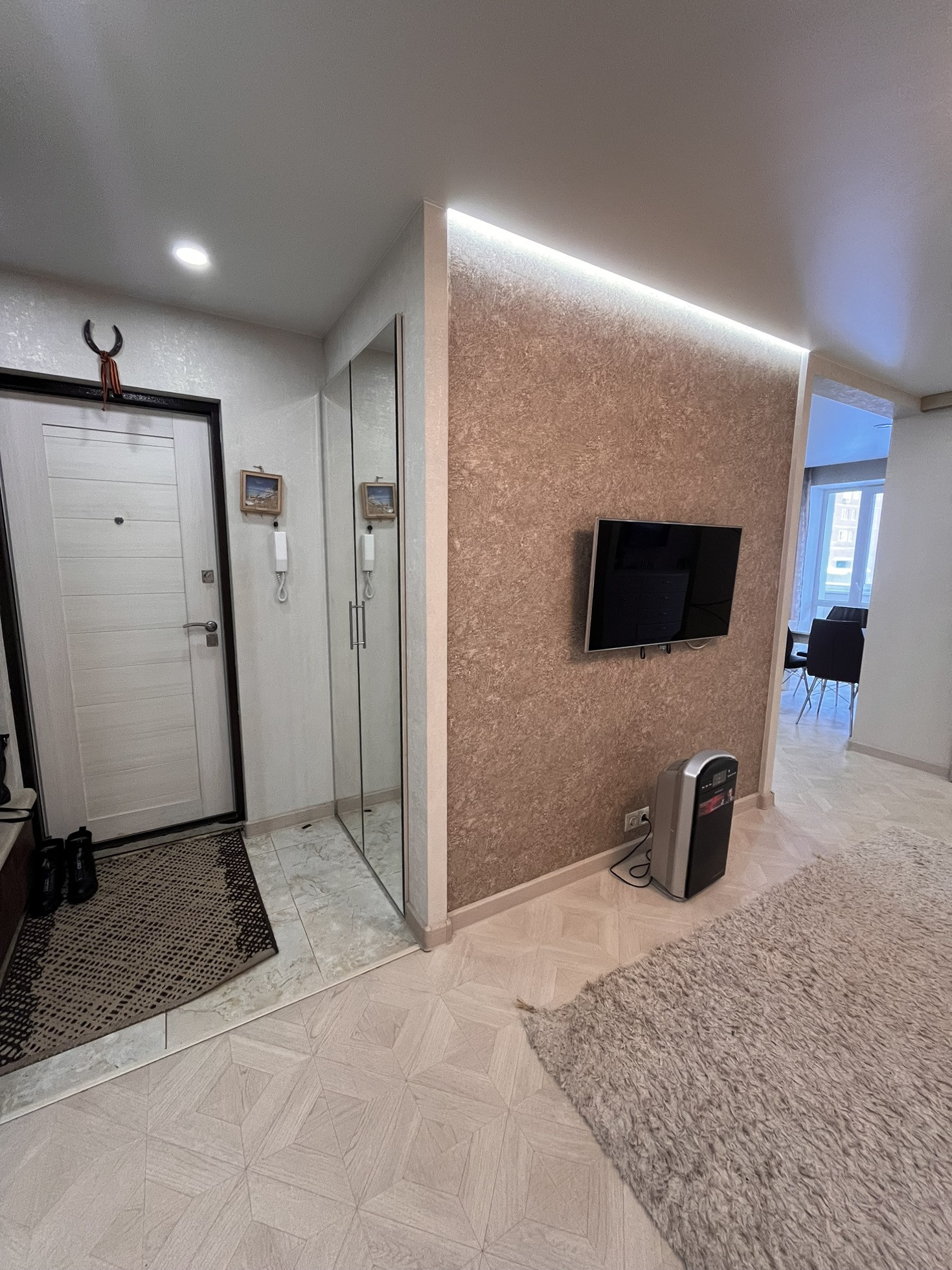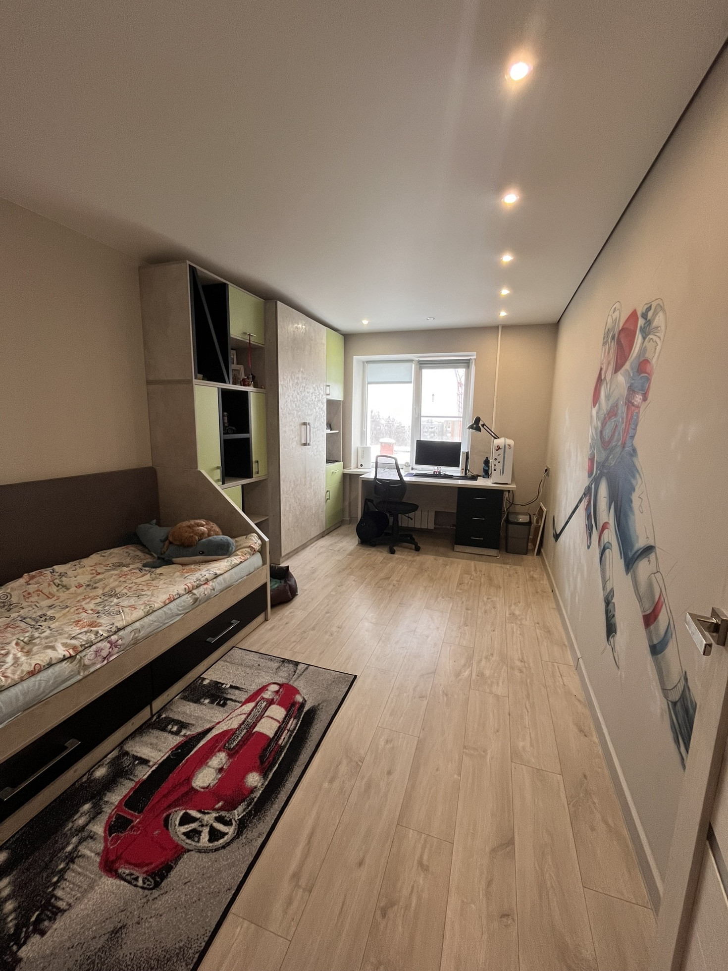 Имеется вместительная гардеробная .