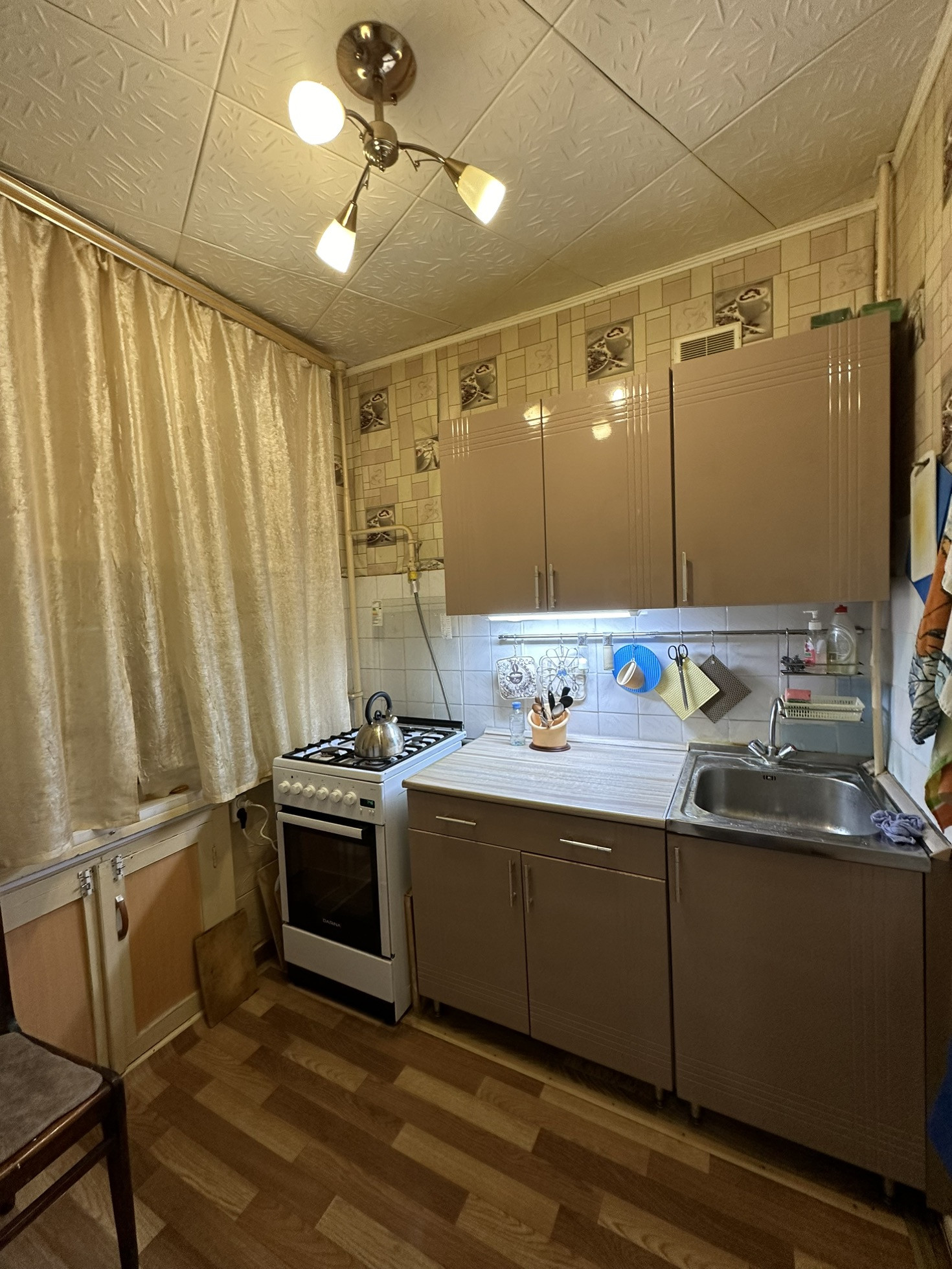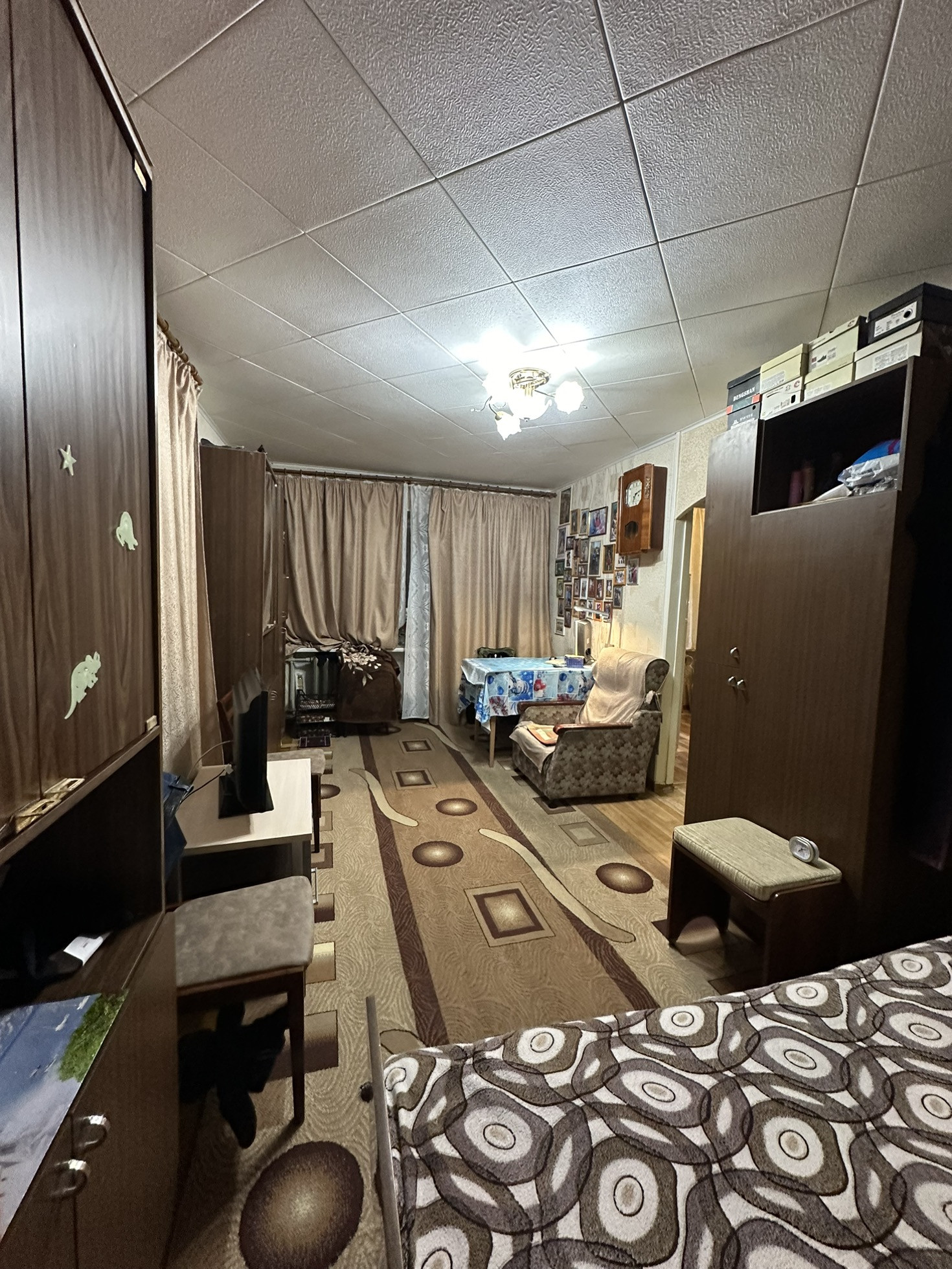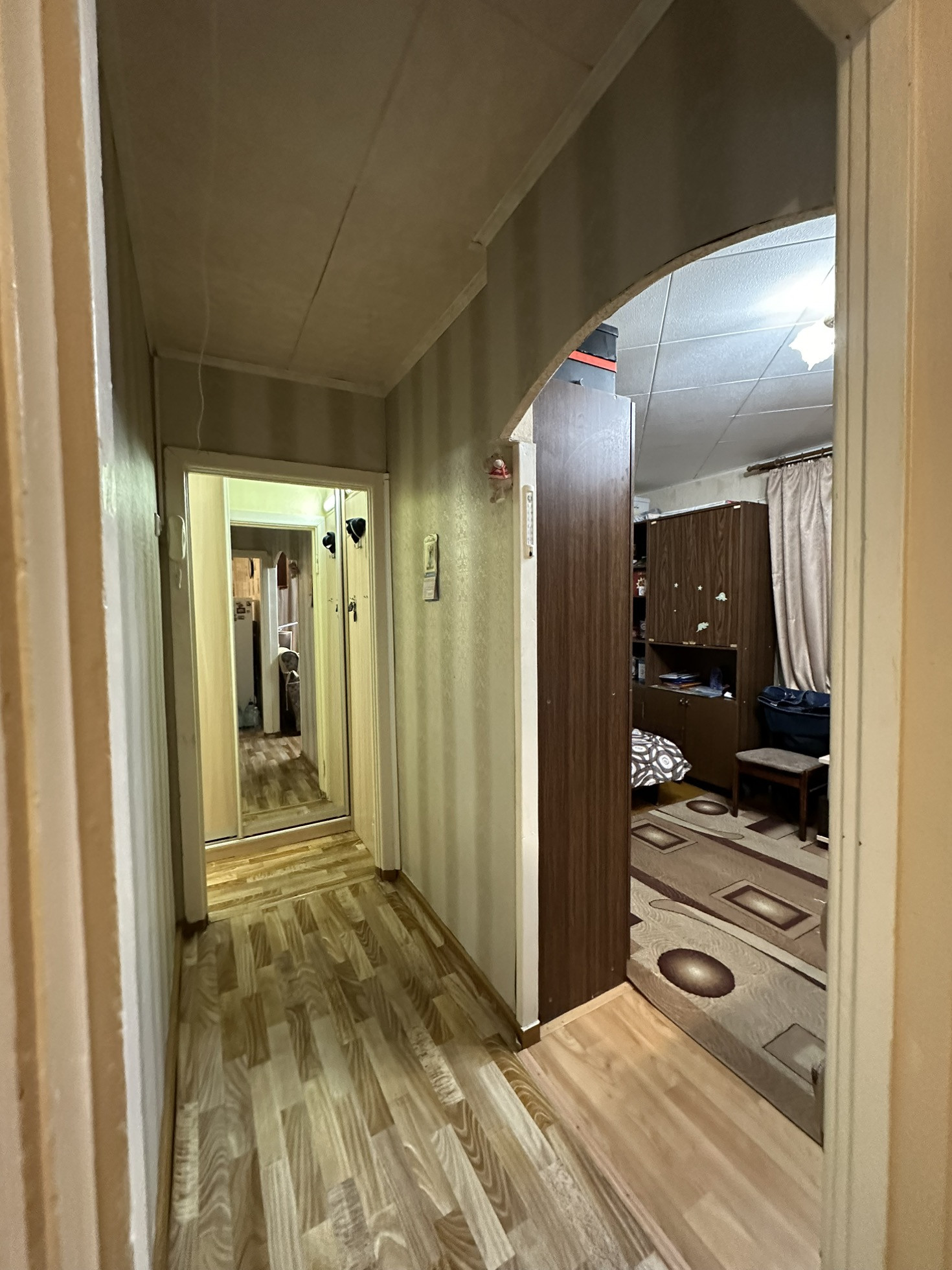Общая площадь 31м , комната 17м. С/у раздельно в панелях. Косметический ремонт Остается кухонный гарнитур и шкаф купе.