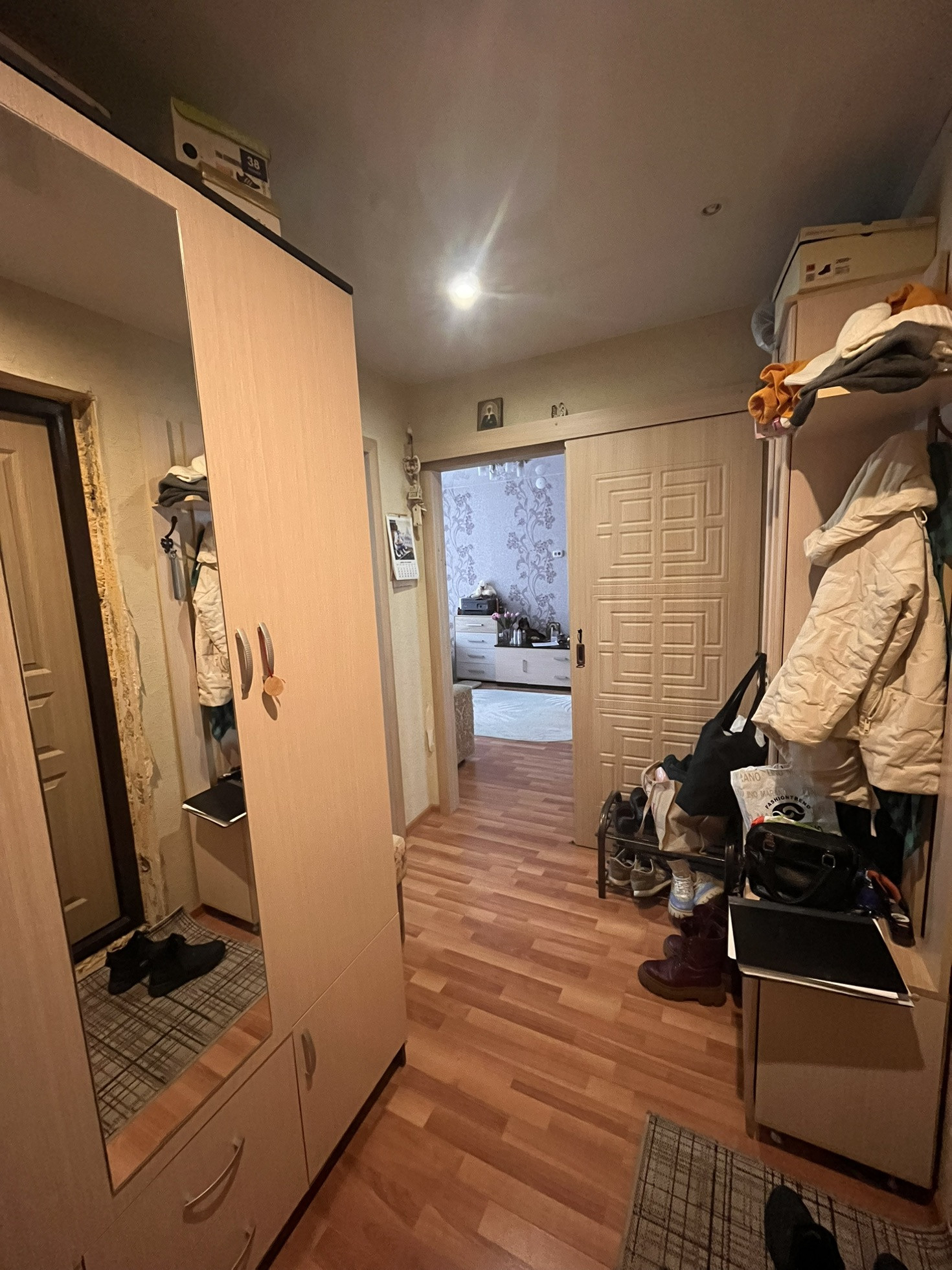 Остается кухонный гарнитур , шкаф в комнате , шкаф в прихожей.