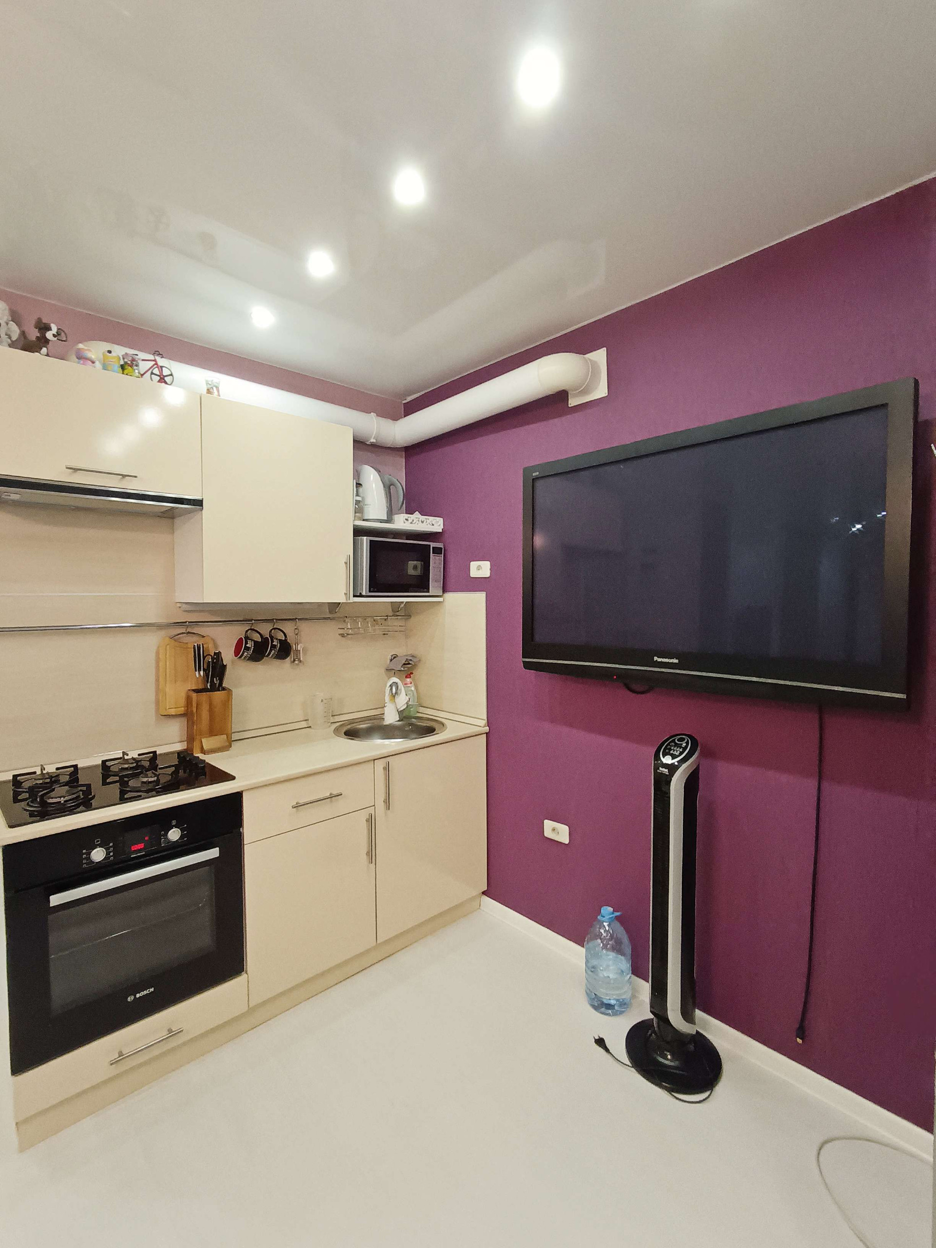 - окна ПВХ, натяжные потолки, пол - ламинат;