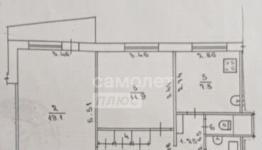 Общая площадь 52.3 м2