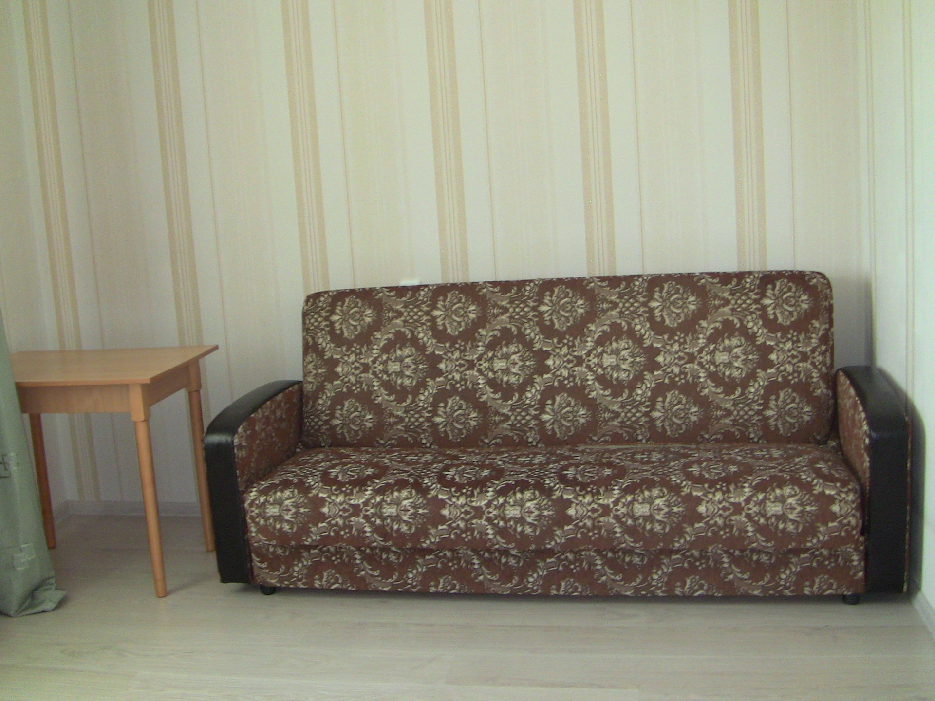 В квартире имеется кухонный гарнитур, газовая плита, диван, кресло, шкаф для одежды.